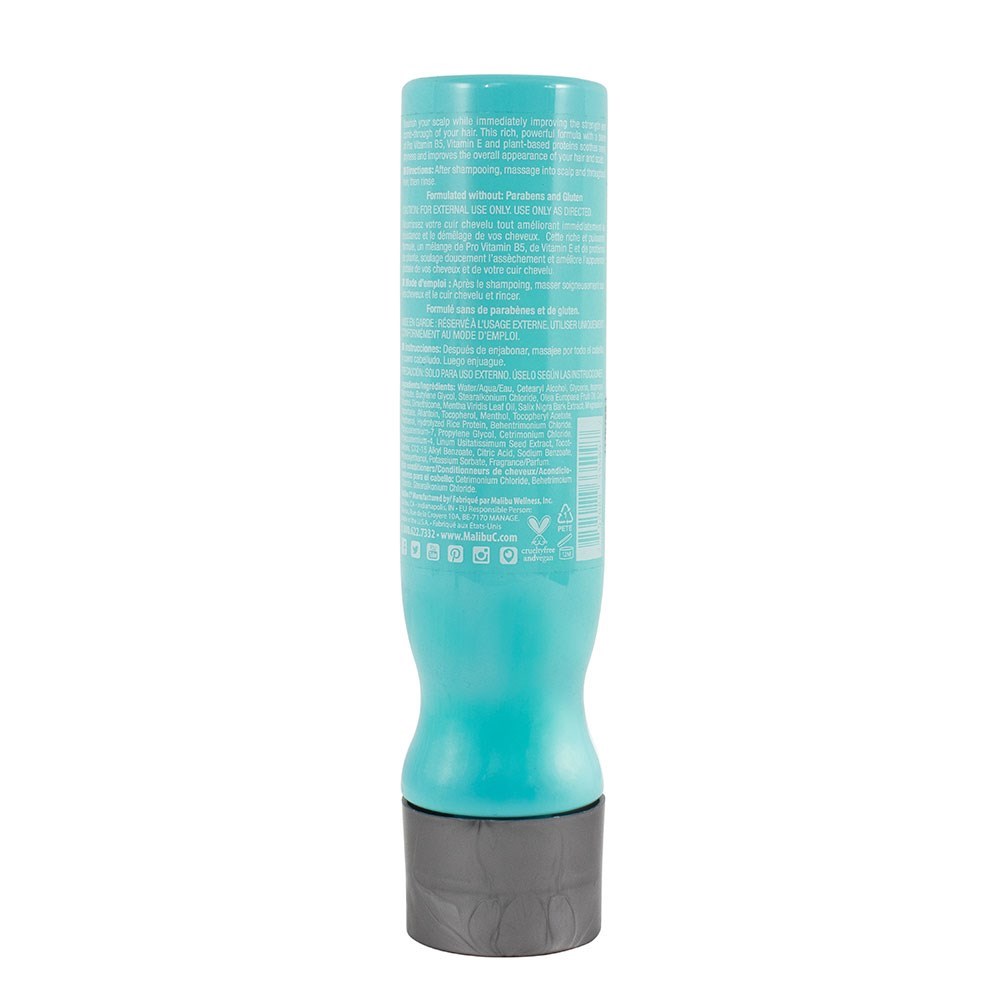 Nourish the scalp while immediately improving strength and manageability of hair. Malibu C Scalp Conditioner is an exclusive 100% vegan formula, free from harsh chemicals and scalp drying agents. This rich, powerful conditioner, blended with pro vitamin B5, vitamin E and plant-based proteins, soothes away dryness while improving overall appearance of the scalp and hair. Infused with eucalyptus and spearmint essential oils.