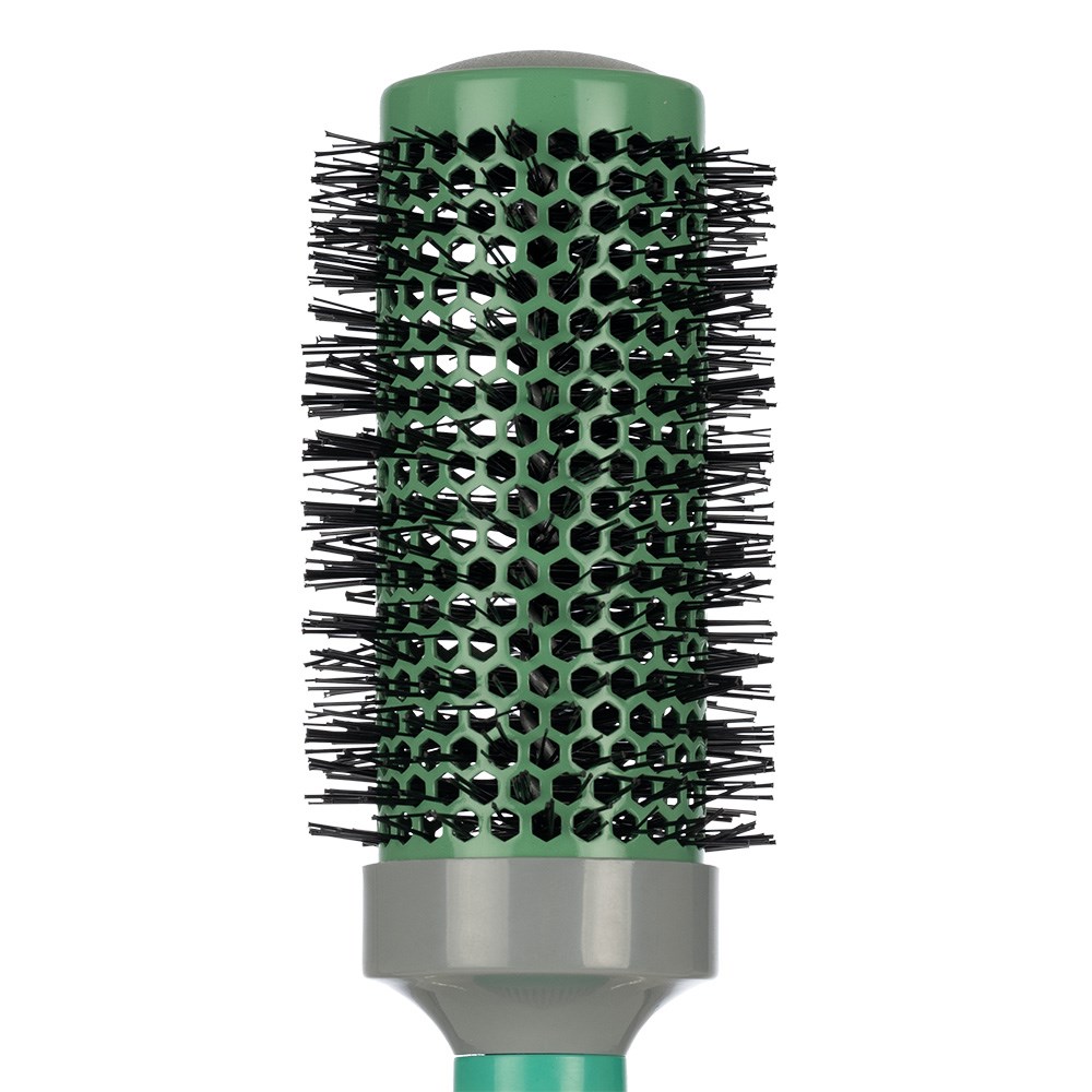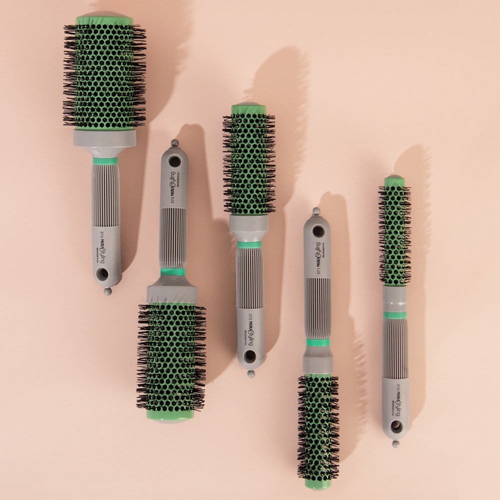 This new generation ceramic coated hot tube brush from Mira diffuses heat from a hair dryer rapidly and evenly, shortening drying time. Ceramic distributes heat consistently, without damaged hot spots. The soft cushion grip and light weight of Mira Ceramic Hot Thermal Hot Tube Brushes make them comfortable to use while offering superior control. Ideal for smoothing, volume and movement. Large.