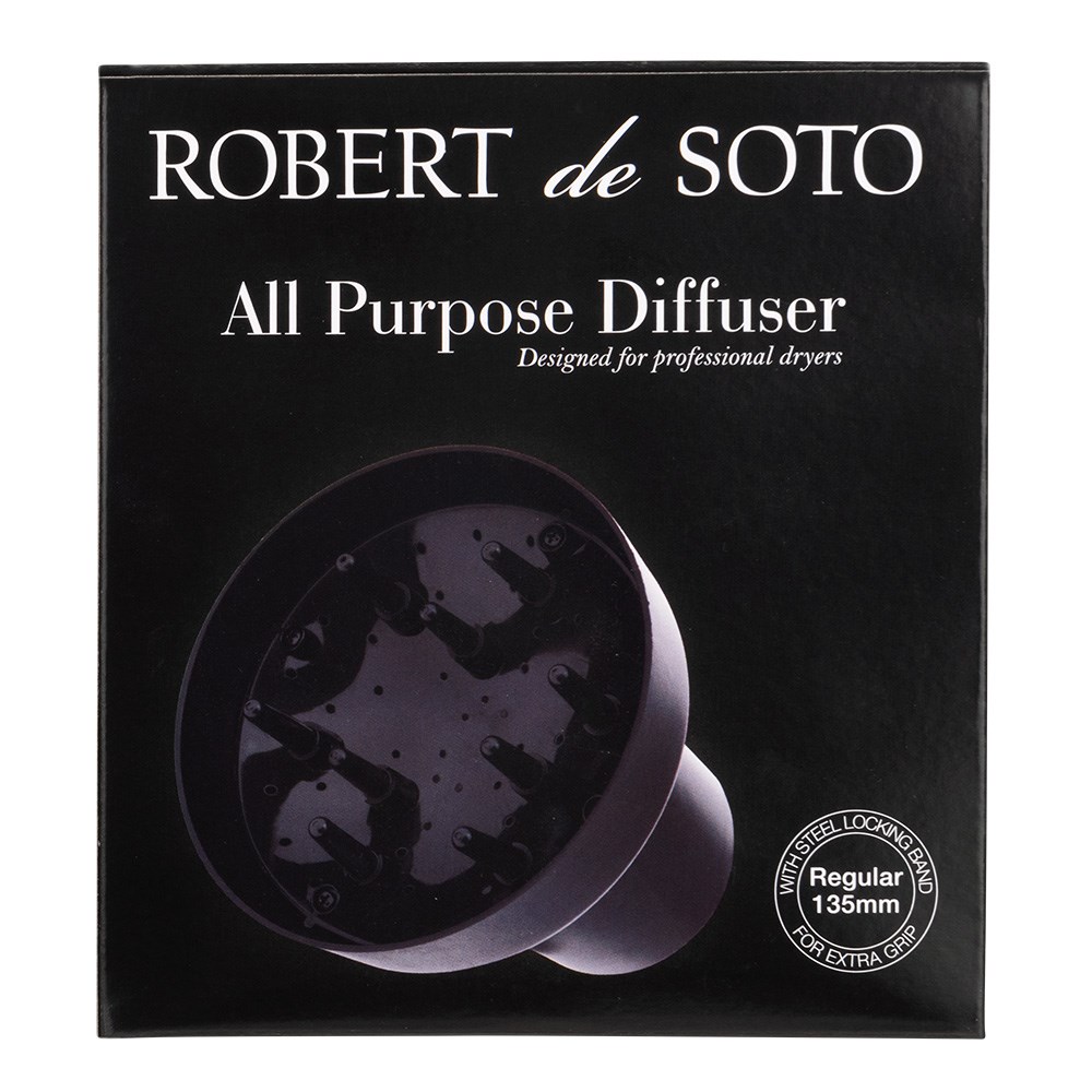 Enhance natural texture and curls without unwanted frizz. Robert de Soto Hair Dryer Finger Diffuser Regular is an all-purpose diffuser designed to fit most hair dryers. Made from long-life plastic for superior durability in a day-in, day-out salon environment, the diffuser features a steel locking band for extra grip on your hair dryer. Bring out the best in texture while enabling faster drying!