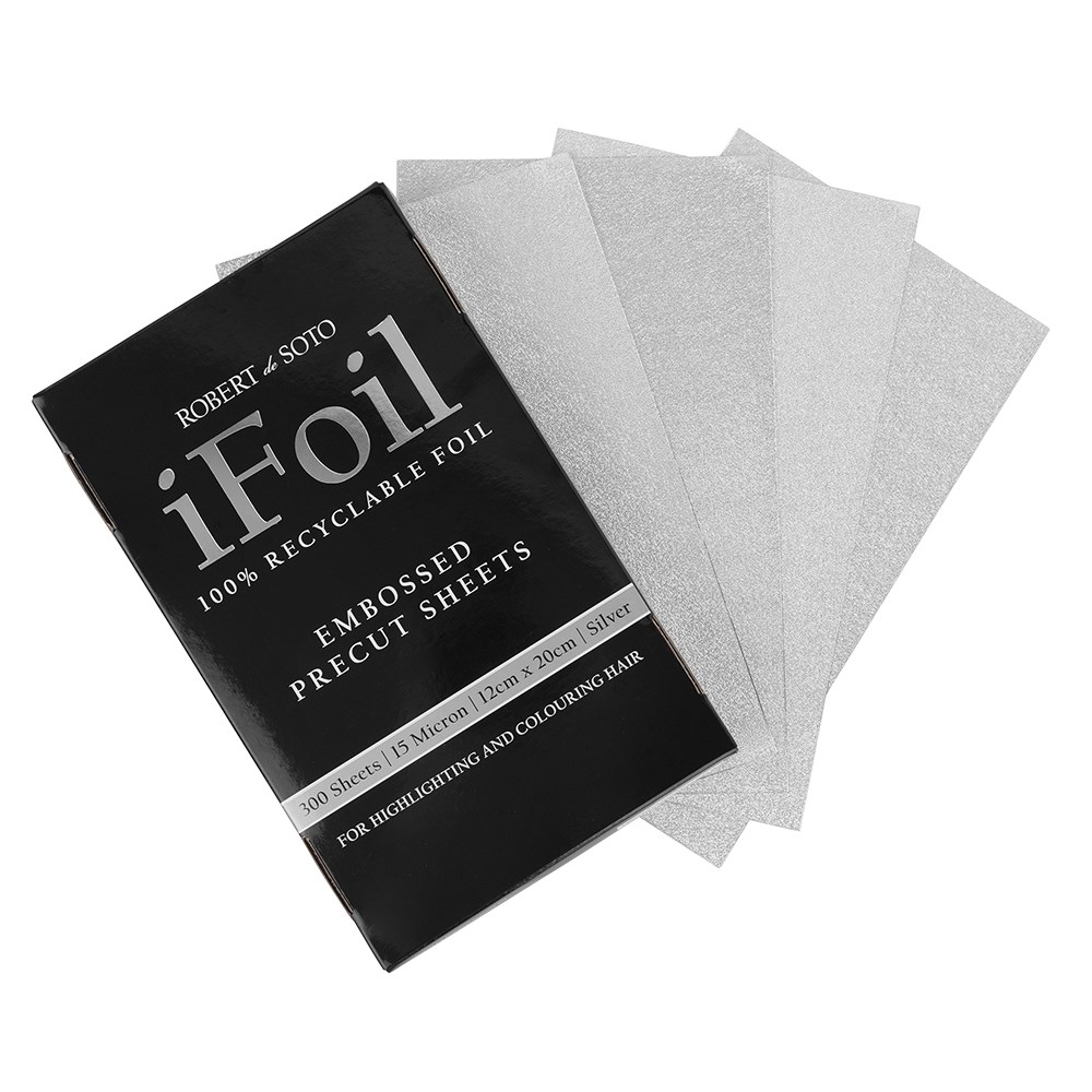 Have you ever noticed that pre-cut foil has tissues between each sheet? Not any more! Robert de Soto does away with the tissues making it all the more easy to use for a busy salon. Solution: non-slip embossed foil! 300 sheets.