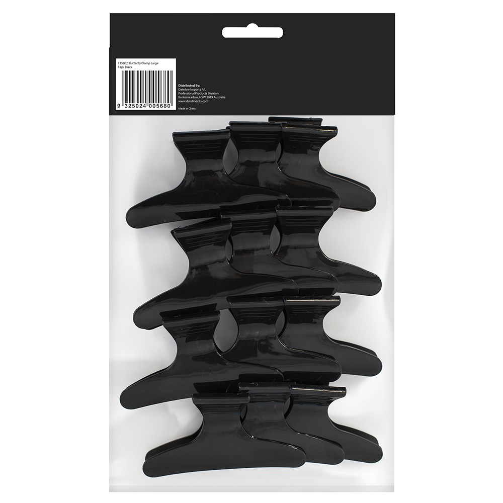 Salon Smart Black Butterfly Hair Clips Large 12pk effortlessly hold hair in place with a comfortable, but cozy grip. Good for all hair types, thick or thin, these clips can be used to create a variety of styles and cute up-dos. Pack includes 12 all black butterfly clips.