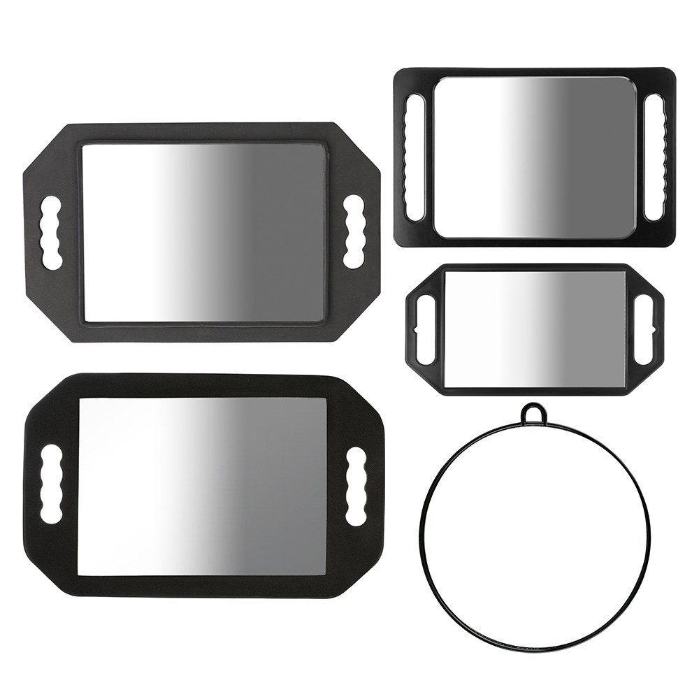 Upgrade your salon essentials with the Salon Smart Rectangle Hairdressing Mirror with Handles - a professional-grade mirror designed for both functionality and style. Ideal for hairdressers, barbers, and beauty professionals, this lightweight yet durable mirror features a large rectangular viewing surface that provides a clear, full reflection of the back and sides of the client's head. Equipped with ergonomic handles on both sides, it offers a secure and comfortable grip for effortless positioning and easy manoeuvrability during client consultations or final style checks. The sleek black frame is modern and easy to clean, making it a practical and stylish addition to any salon or barber shop.