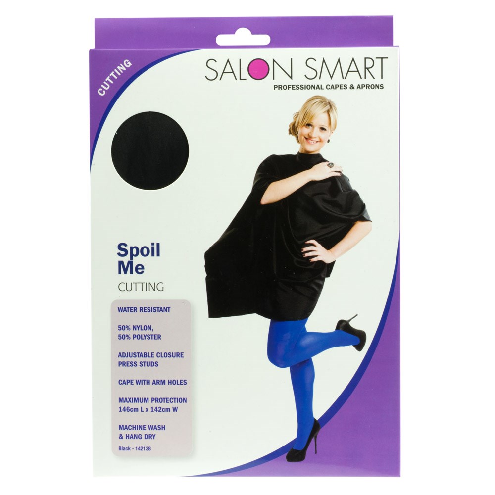 Pamper your clients with the Salon Smart Spoil Me Hairdressing Cutting Cape. Made from water resistant nylon and polyester, this luxurious large cape features maximum protection for your clients. Ideal for use during haircutting. Adjustable press stud snap closure ensures a comfortable fit.
