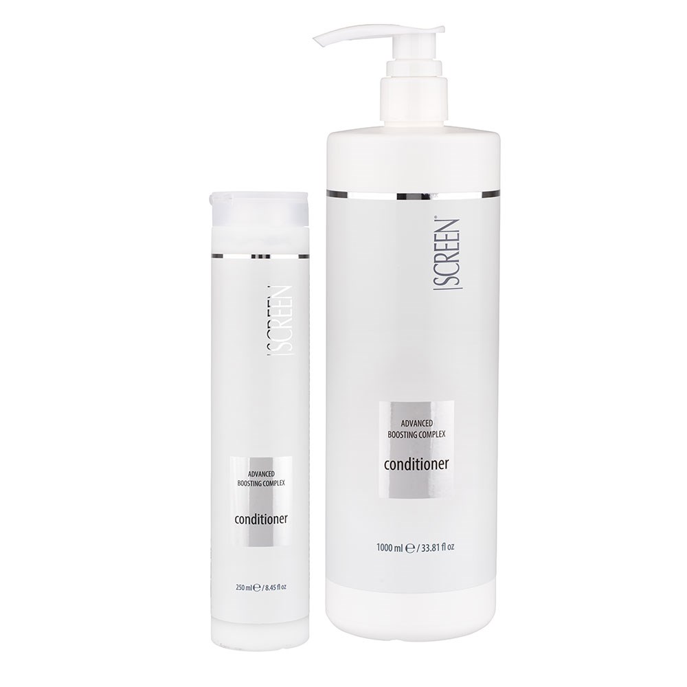 Lovers of beautiful hair never leave anything to chance. Screen Advance Boosting Complex (ABC) is an effective, sweetly scented range designed to enhance hair’s beauty, simply and instantly. Nourish and richly hydrate the hair with Screen Advanced Boosting Complex Conditioner 1L. Beautiful softness, shine and manageability without extra weight. This moisturising conditioner is infused with a peach flower and argan fragrance to soothe the senses while you condition. Made in Italy.