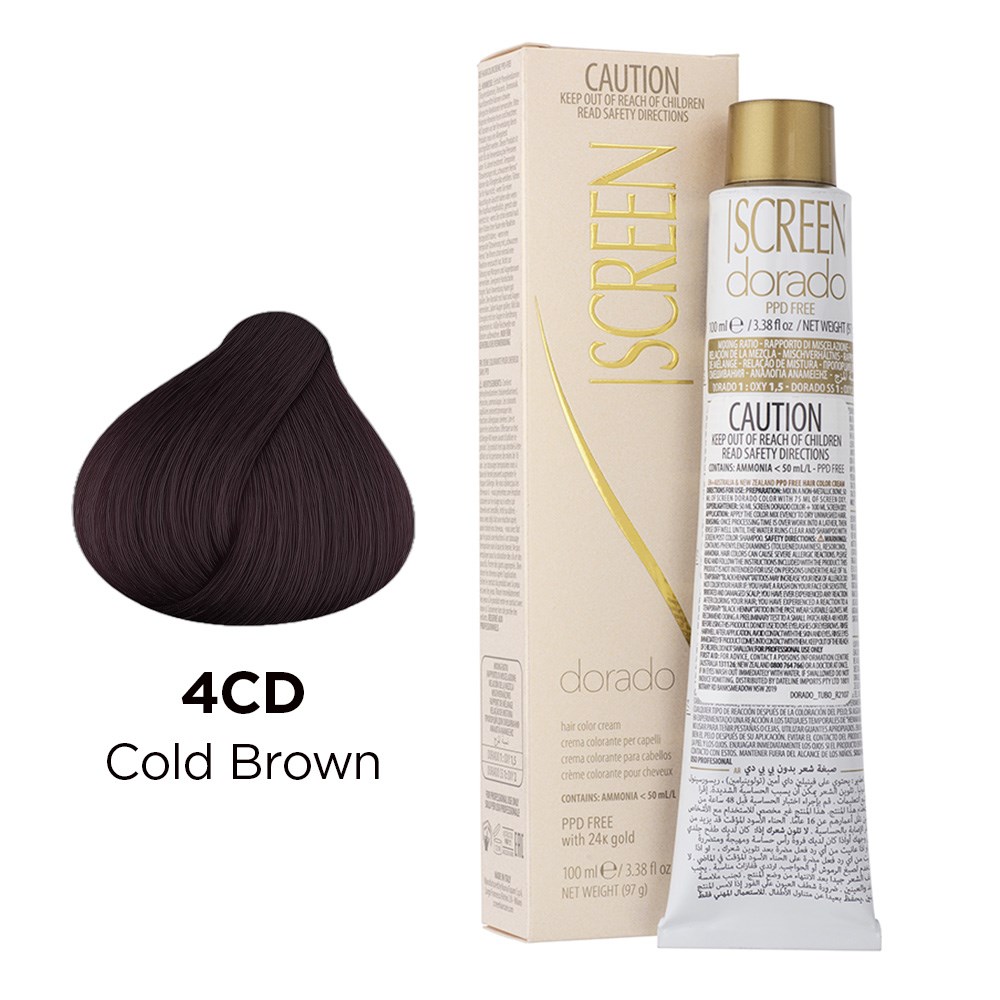 Precious cream colour with unique tonal richness. Developed in a wide range of colours, Screen Dorado Hair Colour Cream 4CD Cold Brown is the culmination of advanced technology, research and continuous testing. This hair colouring cream is PPD-free and enriched with 24K gold for results which are truly incredible. Microparticles of gold reflect light, multiplying the brilliance of colour. Colour is intensely rich and exceptionally long-lasting. Maximum grey coverage and balanced, uniform results. Elite colour created in Italy.