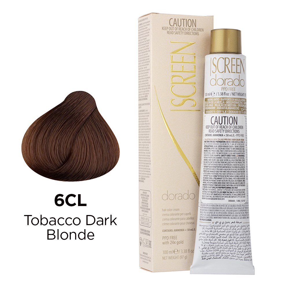 Precious cream colour with unique tonal richness. Developed in a wide range of colours, Screen Dorado Hair Colour Cream 6CL Colonial Tobacco Dark Blonde is the culmination of advanced technology, research and continuous testing. This hair colouring cream is PPD-free and enriched with 24K gold for results which are truly incredible. Microparticles of gold reflect light, multiplying the brilliance of colour. Colour is intensely rich and exceptionally long-lasting. Maximum grey coverage and balanced, uniform results. Elite colour created in Italy.
