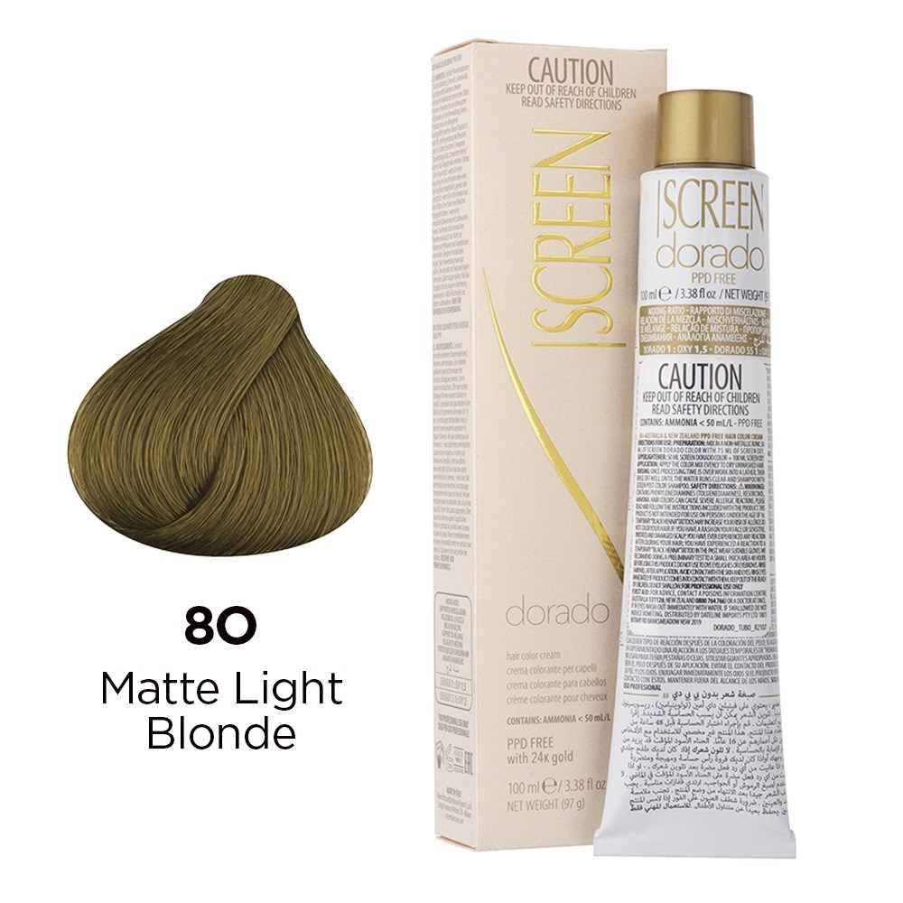 Precious cream colour with unique tonal richness. Developed in a wide range of colours, Screen Dorado Hair Colour Cream 8O Olive Matte Light Blonde is the culmination of advanced technology, research and continuous testing. This hair colouring cream is PPD-free and enriched with 24K gold for results which are truly incredible. Microparticles of gold reflect light, multiplying the brilliance of colour. Colour is intensely rich and exceptionally long-lasting. Maximum grey coverage and balanced, uniform results. Elite colour created in Italy.