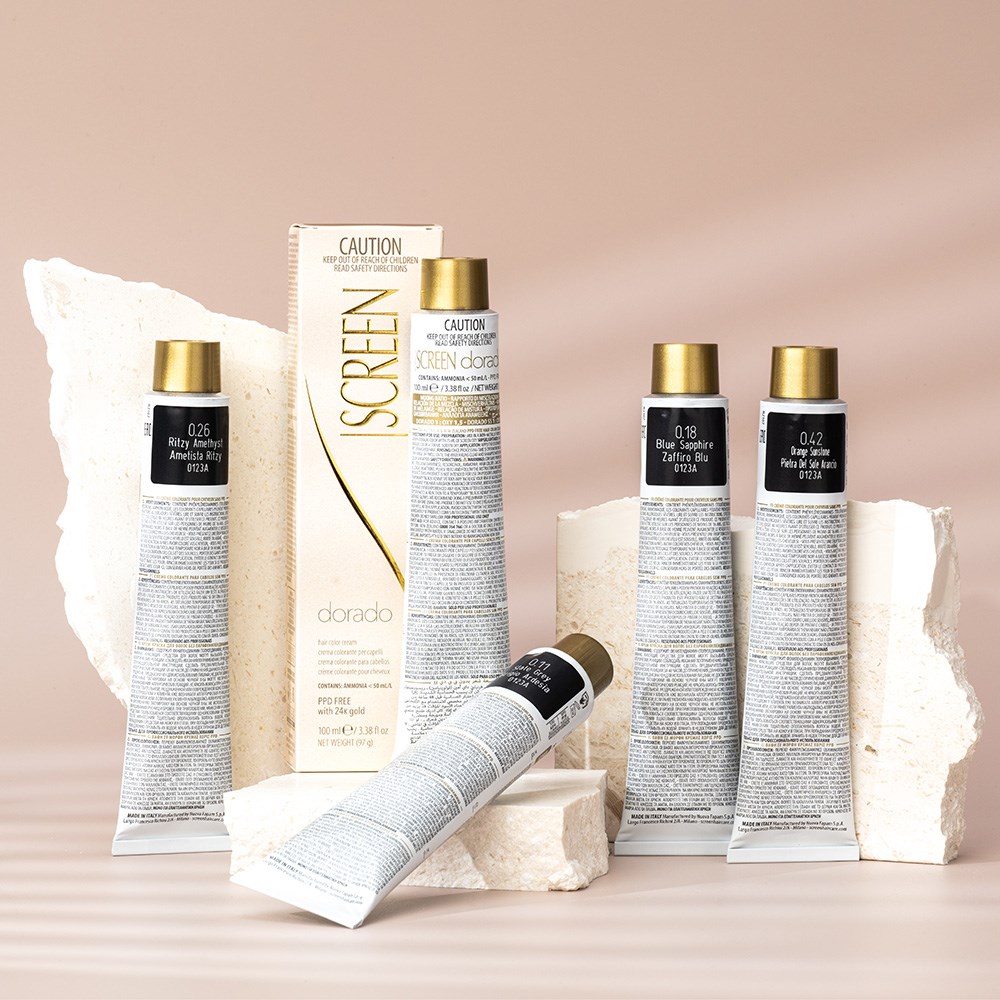 Inspired by the changing colours of the Grand Canyon over the course of the day, Screen has created the beautiful Colorado Twinkle collection. Screen Dorado Hair Colour Toner 0.18 Blue Sapphire is a precious hair cream with unique tonal richness. This hair colouring cream is PPD-free and enriched with 24K gold for results which are truly incredible. Microparticles of gold reflect light, multiplying the brilliance of colour. Colour is for toning and does not affect the base colour. Ethereal and sophisticated colour created in Italy.