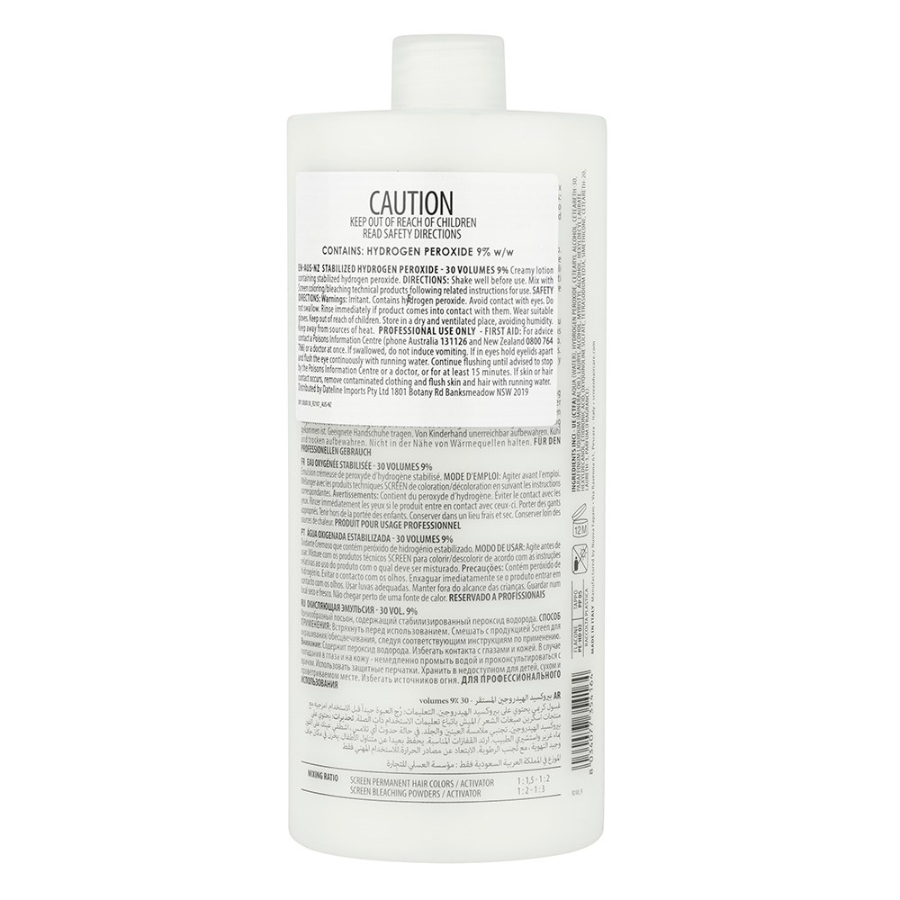 For the most even and consistent results during the colouring and bleaching process, choose Screen Oxy Liquid 30 Volume Developer. Made in Italy to the highest standards, this oxidant emulsion contains 9% stabilised hydrogen peroxide . Designed to be mixed with Screen’s elite colouring and bleaching products. Screen has swept across 68 countries, championed by hair artists who love the advanced ingredients and gorgeous results.