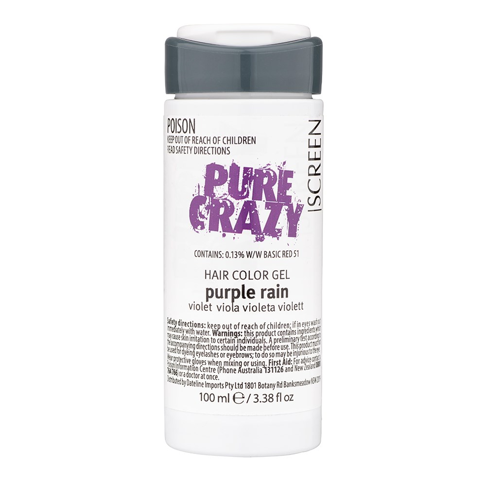 Transform hair into the most fashionable accessory. Screen Hair Care Pure Crazy Colour Gel Purple Rain is a pure expression of creativity. Give life to vibrant and original colours without commitment, bleaching or stressing hair. Formulated by professionals, this hair colour gel conditioner adds temporary colour and conditions at the same time. Great for those who love to play – test your creativity with intermixable shades for infinite possibilities! From pastel to vivid, this is high quality, professional temporary colour made crazy fun.