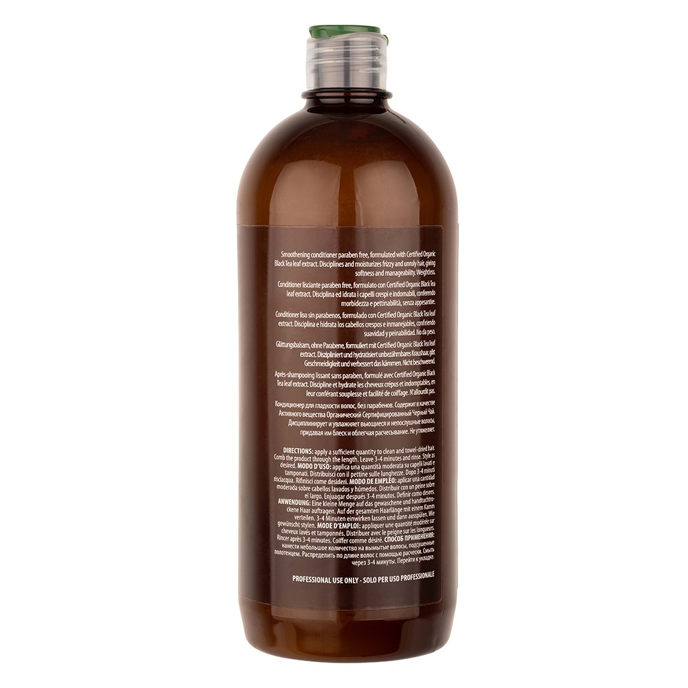 Organic ingredients for the maximum expression of purity. Screen Purest Smoothen Sleeking Conditioner 1L is clean beauty made in Italy. Formulated with certified organic black tea leaf extract, this smoothing conditioner moisturises, softens and adds manageability to unruly hair. Black tea leaf is known for its restructuring and moisturising abilities. SLS-free and paraben-free, this conditioner is suitable for daily use. Naturally derived, non-genetically modified ingredients in a colourant-free formula for smoothness and silkiness.