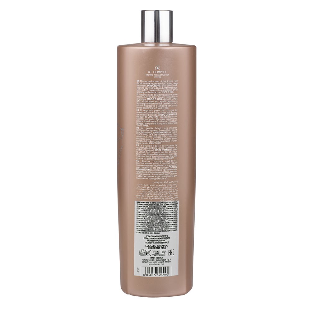 Rebuild dry, damaged hair instantly. Powered by Keratin Intensive Complex, Screen Repair Internal Reconstruction System is a revolutionary repair system for damaged, stressed and chemically treated hair. An exclusive concentrate of 20 amino acids renews balance, strength and softness. Low molecular weight proteins penetrate deeply for optimal reconstruction of the cortex, while high molecular weight proteins renew the cuticle. This is stage 2 of the 3 step repair system. Screen Repair Internal Reconstruction Stage 2 Hair Treatment is an intense repair treatment which opens the cuticle to allow for deeper penetration into the cortex.