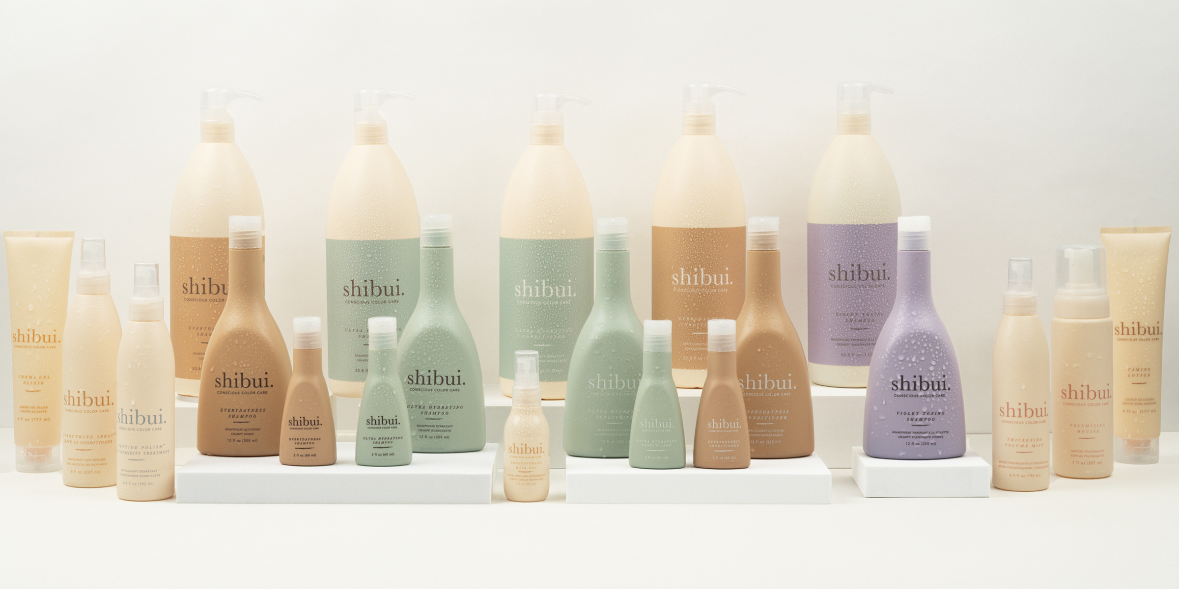 Shibui’s product ranges follow on from their ethos with a comprehensive line-up of extensive technology. In care, the Everydayness range is made for frequent use, with a gentle Shampoo and Conditioner imbued with Rose Water, Saké, Peach Kernel Oil and Babassu Oil, as well as a floral cherry blossom scent, to cleanse, soften and add shine to fine and medium hair. The Ultra-Hydrating duo is made to nourish the scalp and preserve colour vibrancy, where the Shampoo and Conditioner offer Camellia Oil, Lemongrass Oil, Hyaluronic Acid and Shea Butter, as well as a floral scent, for moisture and softness. A violet toning shampoo, comprised of Acai Oil and Hibiscus Flower Extract, is made with purple pigments to eliminate brassiness.