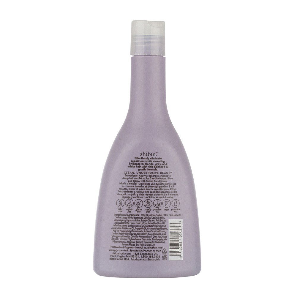 Conscious colour care. Shibui goes back to nature’s drawing board, embracing botanically-rich colour care which is simple and unobtrusive. Beyond clean beauty, this is a new level of conscious colour care redefining beautiful. Shibui Violet Toning Shampoo effortlessly eliminates brassiness while elevating brilliance in blonde, grey and white hair. A balanced and gentle formula. Simply scented, free from synthetic fragrance. Vegan and free from sulphates, silicone, gluten, parabens, phthalates and cruelty.