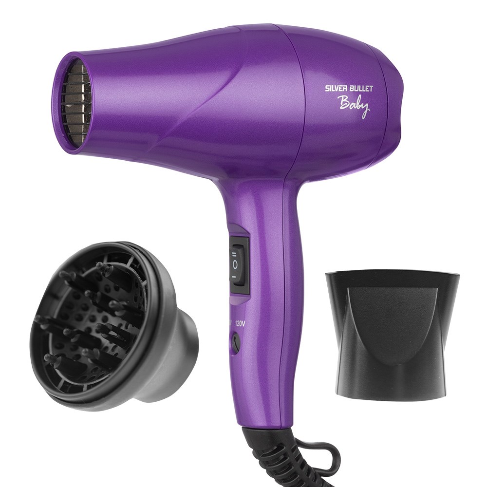 Silver Bullet Baby Travel Hair Dryer is a teeny tiny hair dryer with almighty power. This incredibly compact, light and travel-friendly hair dryer has a powerful airflow and 2 speed/heat settings for every hair type. Dual voltage for worldwide use, the Silver Bullet Baby Travel Hair Dryer is a styling superstar for on the go.