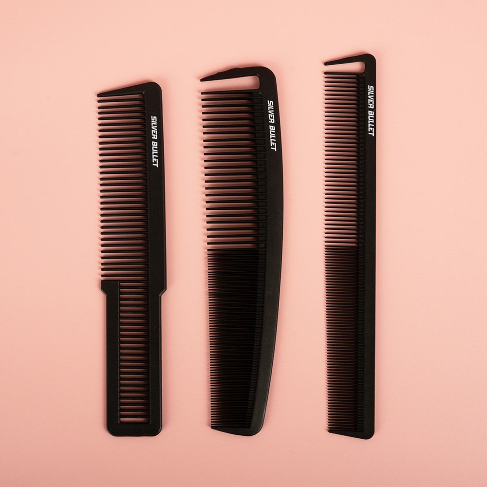 Silver Bullet Carbon. Strong. Resistant. Super-smooth. Silver Bullet Carbon Clipper Cutting Comb is made from carbon fibre and unconditionally guaranteed against breakage. Super-smooth teeth effortlessly glide through all hair types. Heat resistant and perfect for blow-drying. Ideal for use with chemicals. This 22.5cm comb features a wide design to allow your clipper to run directly over the top.