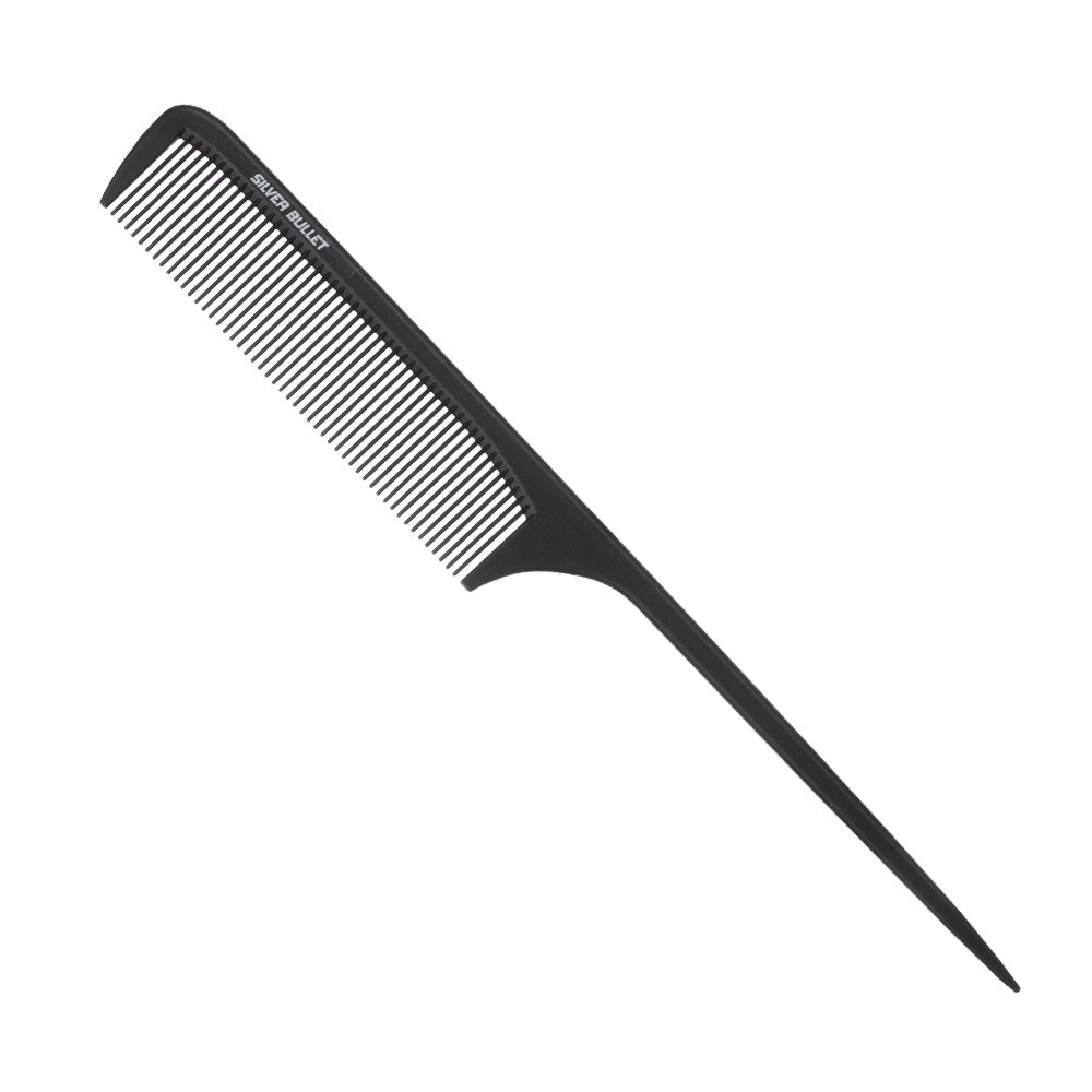 Silver Bullet Carbon. Strong. Resistant. Super-smooth. Silver Bullet Carbon Tail Comb is made from carbon fibre and unconditionally guaranteed against breakage. Super-smooth teeth effortlessly glide through all hair types. Heat resistant and perfect for blow-drying. Ideal for use with chemicals. This 23.8cm comb is excellent for parting and sectioning during blow-drying, curling and straightening. Plastic pin tail provides gentler sectioning without scratching the scalp.