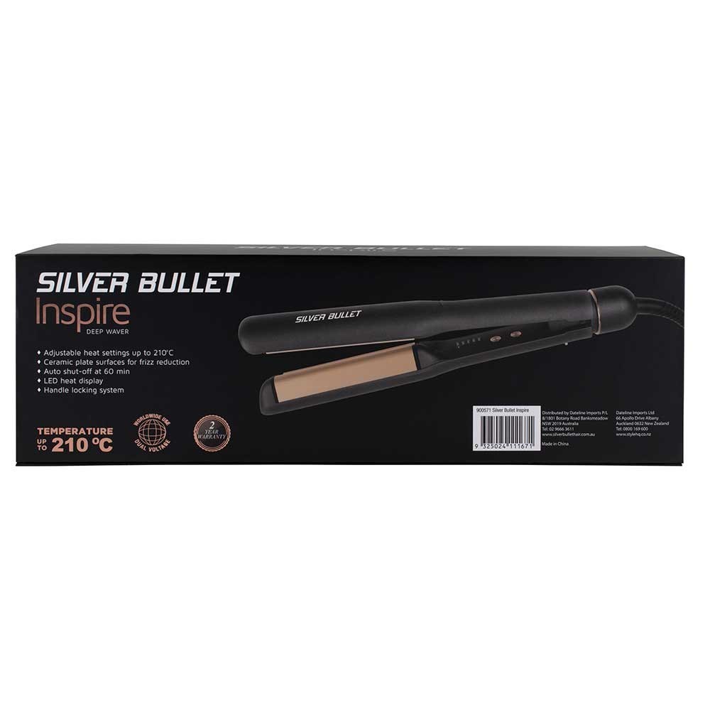 Take a deep dive into the world of Silver Bullet curls and waves. Silver Bullet Inspire Deep Waver is super easy to use, extraordinarily efficient and ultra-fast. From bold, beachy waves to glamorous, retro Hollywood curls, all hair lengths, including shorter hair, will enjoy silky, smooth results faster than ever. Adjustable heat settings to 210°C. Ceramic plate surfaces maximise frizz reduction.