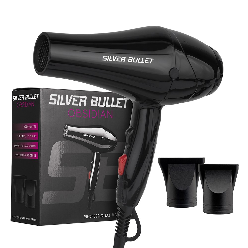 For hair which shines like Obsidian. Hotter, faster, more affordable – that’s what the Silver Bullet Obsidian Hair Dryer is all about. Weighing in at only 480g, Obsidian features a professional long-life AC motor, built to withstand daily salon use. Pumping out 2000 watts, Obsidian includes 3 heat/speed settings for shiny and smooth styling perfection every time.