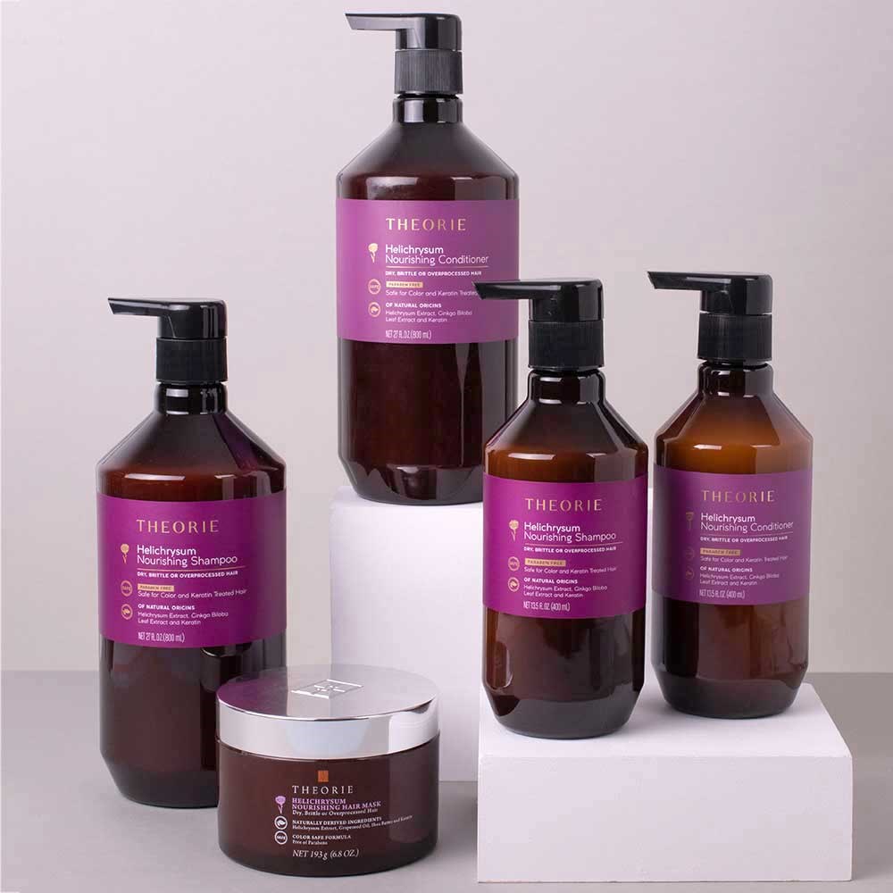 Nourish dry, brittle hair with the Theorie Helichrysum Nourishing Conditioner. Featuring an exclusive formula infused with helichrysum extract designed to deeply condition, detangle and hydrate. Ideally suited to nourish hair suffering from the effects of excessive heat, overprocessing and environmental factors. Delivering extreme moisture and magnificent shine.