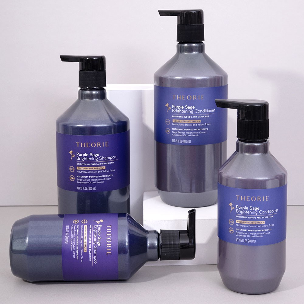 Brighten and restore vibrant blonde and silver hair with the Theorie Purple Sage Brightening Conditioner. Professionally formulated to neutralise brassy and yellow tones. Infused with keratin, sage, helichrysum extract and grapeseed oil, this conditioner seals the cuticle and revitalises hair texture to smooth, reduce frizz and restore natural bounce. Hair is left stronger, smoother and brilliantly radiant.