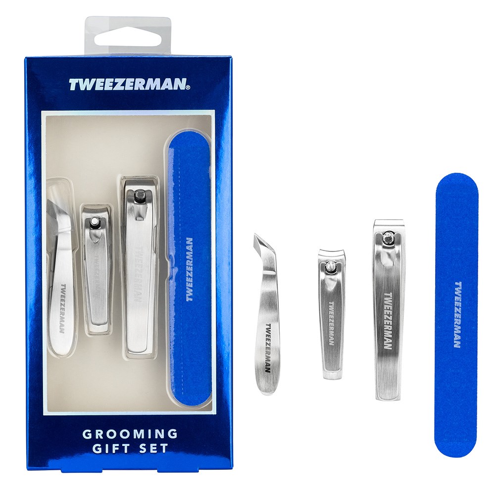 The gift of precision nail trimming and cuticle maintenance! Limited edition Tweezerman Grooming Gift Set includes sharp and precise essentials for your nailcare routine. Nail Clipper features curved blades which follow the natural shape of fingernails. Toenail Clipper features straight blades to reduce the risk of ingrown nails. Mini Cuticle Nipper cleanly cuts your cuticles. Finally, Nail File shapes and defines your beautifully clipped nails. Great for on-the-go touch ups and travel. From Tweezerman, the beauty tool experts.