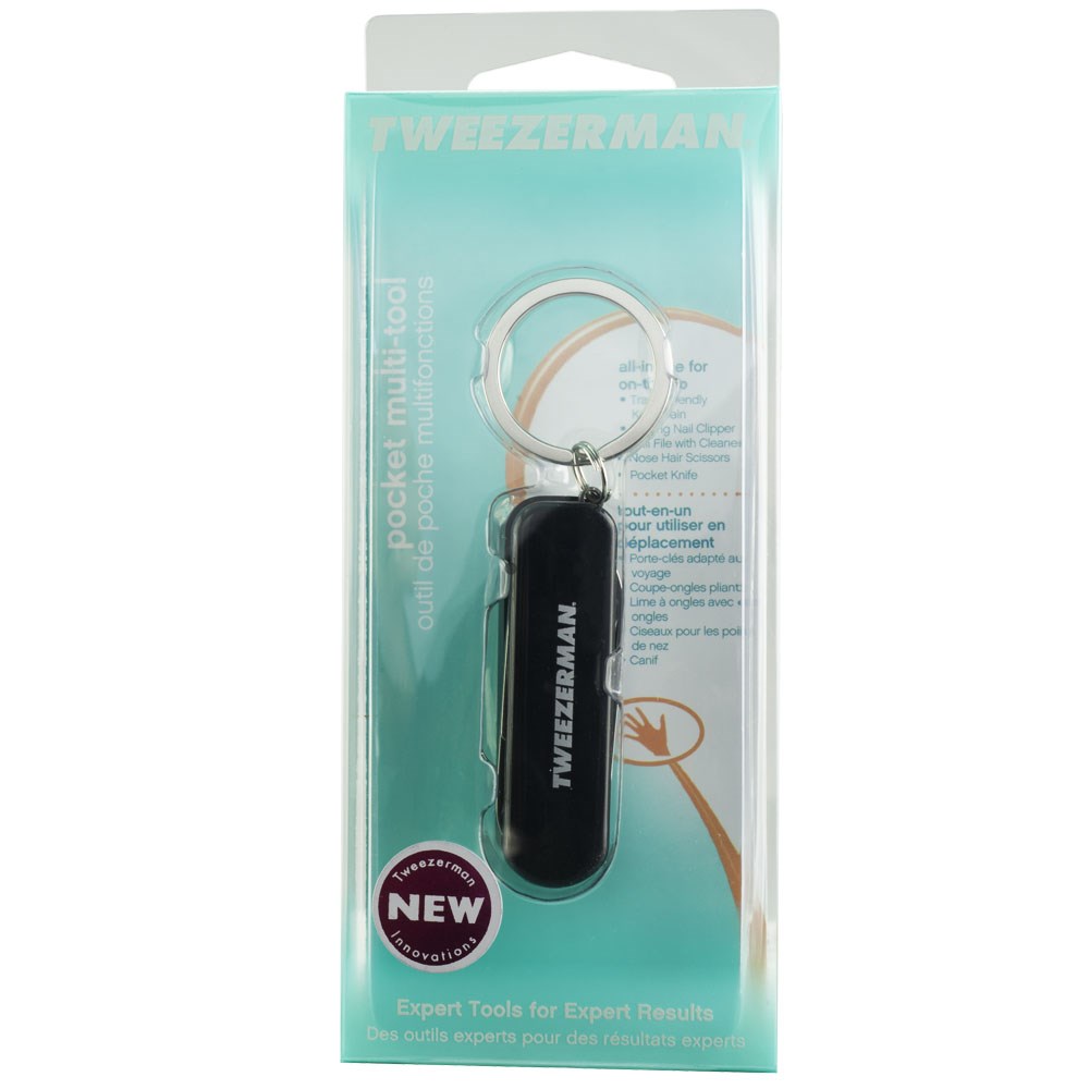 Tweezerman Pocket Multi-Tool fits in your pocket for perfect portability! Consisting of every essential tool for instant grooming, this Tweezerman pocket multi-tool is ideal for stashing in your pocket, bag or office drawer for grooming on the go. Complete with key chain for easy travelling. Tweezerman is made from premium quality, polished stainless steel.