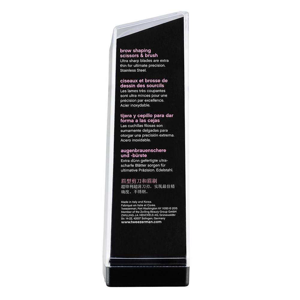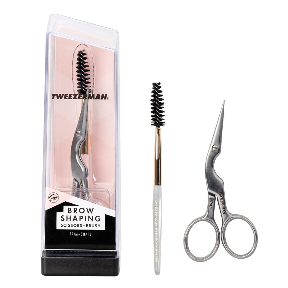 Expertly trim and shape brows. Tweezerman Studio Brow Shaping Set includes premium quality scissors for brow trimming and bonus brow shaping brush. The brow trimming scissors are made from stainless steel and feature ultra-thin blades which are custom designed to trim brow hair. Uniquely contoured scissor body allows for comfortable handling. The brow shaping brush is the ideal assistant with thick, nylon bristles to feather eyebrows into place.