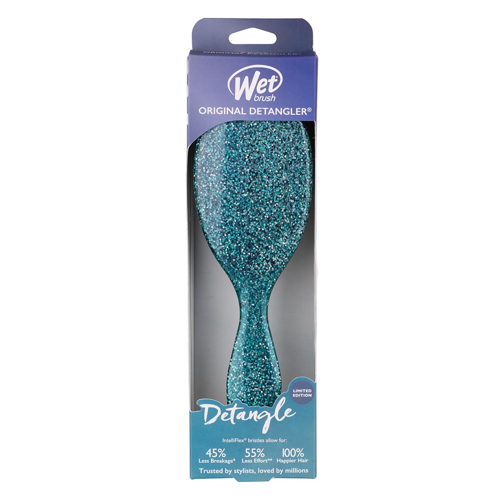 Meet the WetBrush Awestruck Detangler Hair Brush Jewel Teal. World famous exclusive IntelliFlex bristles loosen knots and tangles on wet or dry hair, without pulling or snagging. Letting you brush with less force resulting in less damage. The moment you use a WetBrush Detangler, you’ll never want to try another detangling hair brush again.