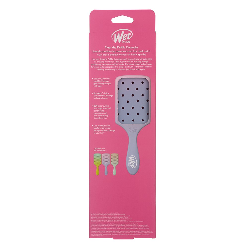 Meet the WetBrush Feel Good Ombre Paddle Detangler Purple. Spread conditioning treatments and hair masks through hair with effortless ease. The vented design makes it easy for water and excess product to escape the brush, ensuring there’s no leftover build-up. Cleaning the brush is a breeze - just rinse and repeat. 20% larger surface area spreads treatments and masks evenly through hair. Also adept at detangling, ultra-soft IntelliFlex bristles glide through tangles without pulling or breaking hair. Feel good in Wet Brush limited edition ombre!