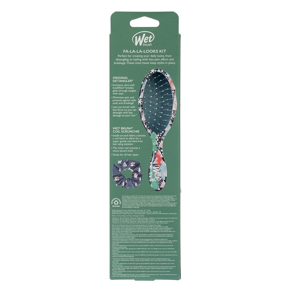 Serving frosty looks! Get in the Christmas spirit with limited edition WetBrush Frosty the Snowman Detangler Scrunchie Kit. Includes the world famous, award-winning Original Detangler with a super cute snowman print, as well as one Coil Scrunchie. 100% happier hair with the Original Detangler featuring exclusive, ultra-soft IntelliFlex bristles, while the Coil Scrunchie utilises IntelliScrunch material to prevent damage and pulling. Happy detangling and styling with less pain, effort and breakage. Great for all hair types.