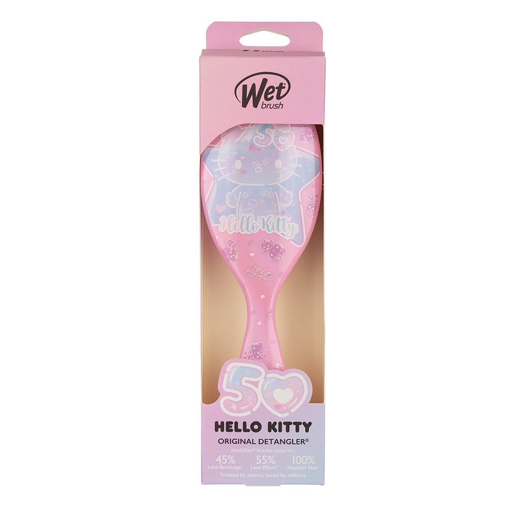 Celebrate Hello Kitty’s 50th birthday with the original, award-winning detangling brush! WetBrush Hello Kitty 50th Birthday Detangler Pink gently loosens knots on wet or dry hair without pulling or snagging. The moment you use it, you’ll feel the difference and never want to try another detangling brush again. Exclusive, ultra-soft Wet Brush IntelliFlex bristles glide through tangles on all hair types with ease. Minimise pain and protect against split ends and breakage. Brush with less force so you can detangle with less damage to hair. A super special Hello Kitty birthday edition!