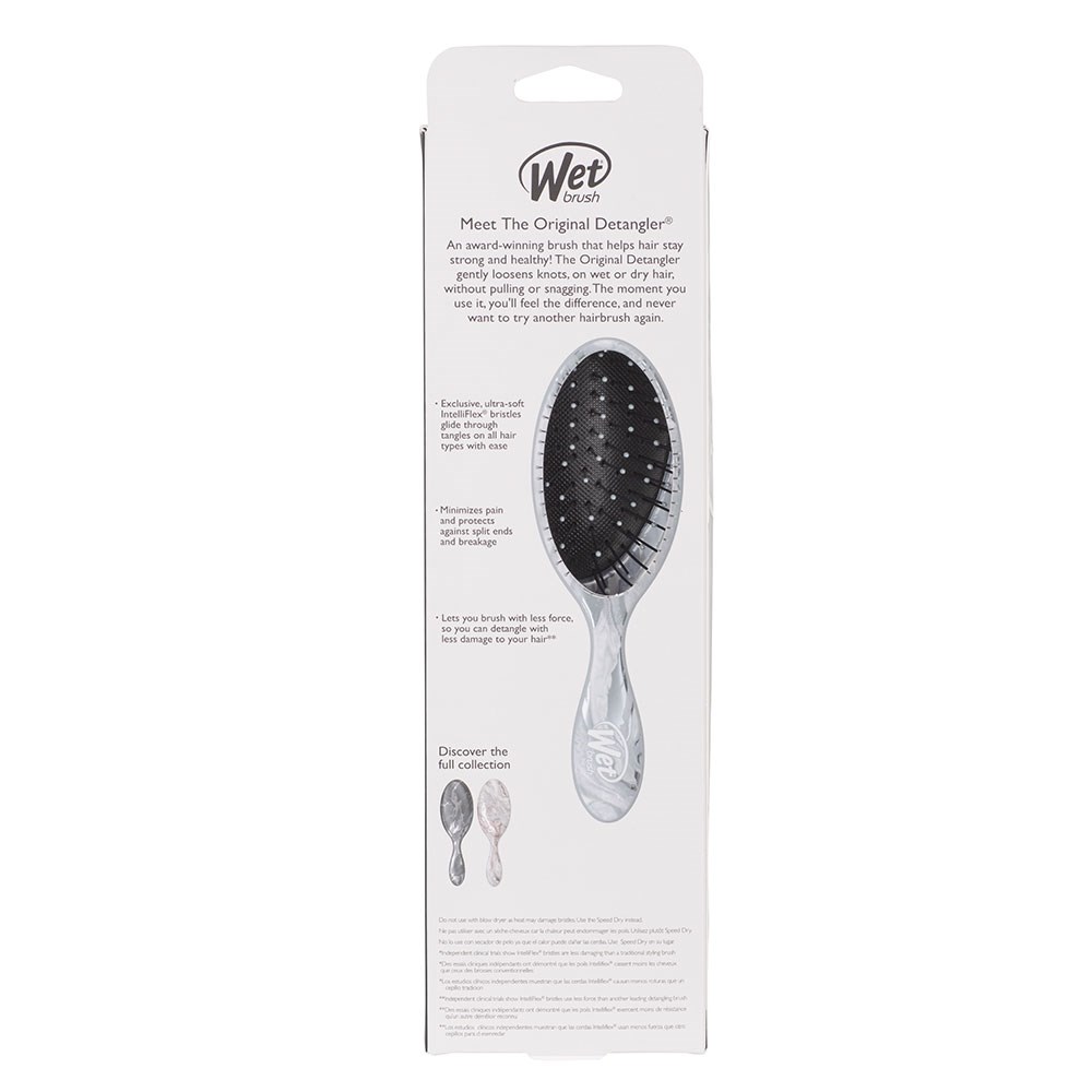 Indulge in luxury with the WetBrush Metallic Marble Detangler in Silver. World famous exclusive IntelliFlex bristles loosen knots and tangles on wet or dry hair, without pulling or snagging. Letting you brush with less force resulting in less damage. The moment you use a WetBrush Detangler, you’ll never want to try another detangling hair brush again.