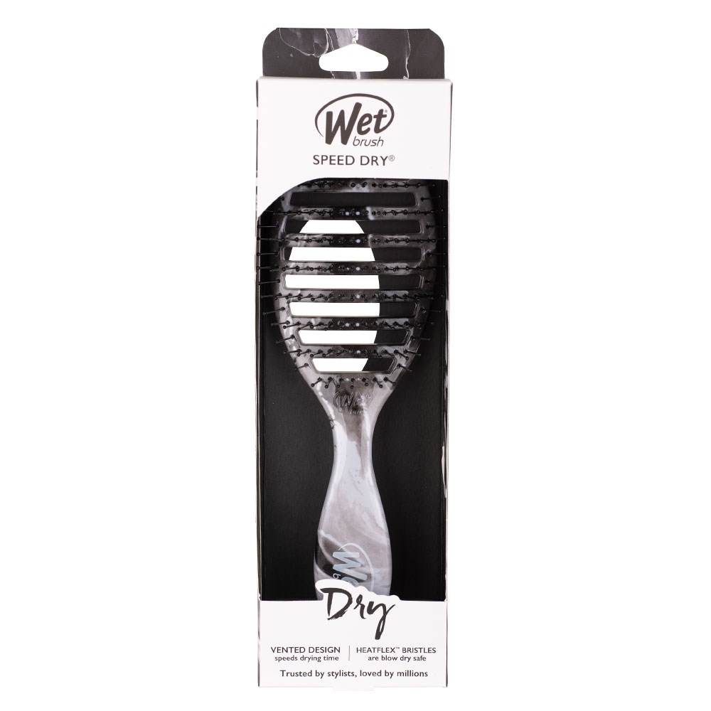 The WetBrush Metallic Marble Speed Dry in Onyx speeds up drying time by allowing moisture to escape faster, and its heat-resistant bristles gently detangle whilst you blow-dry. So you can skip the extra heat and avoid damage, keeping your hair healthy and happy. Less drying time equals happier Hair!