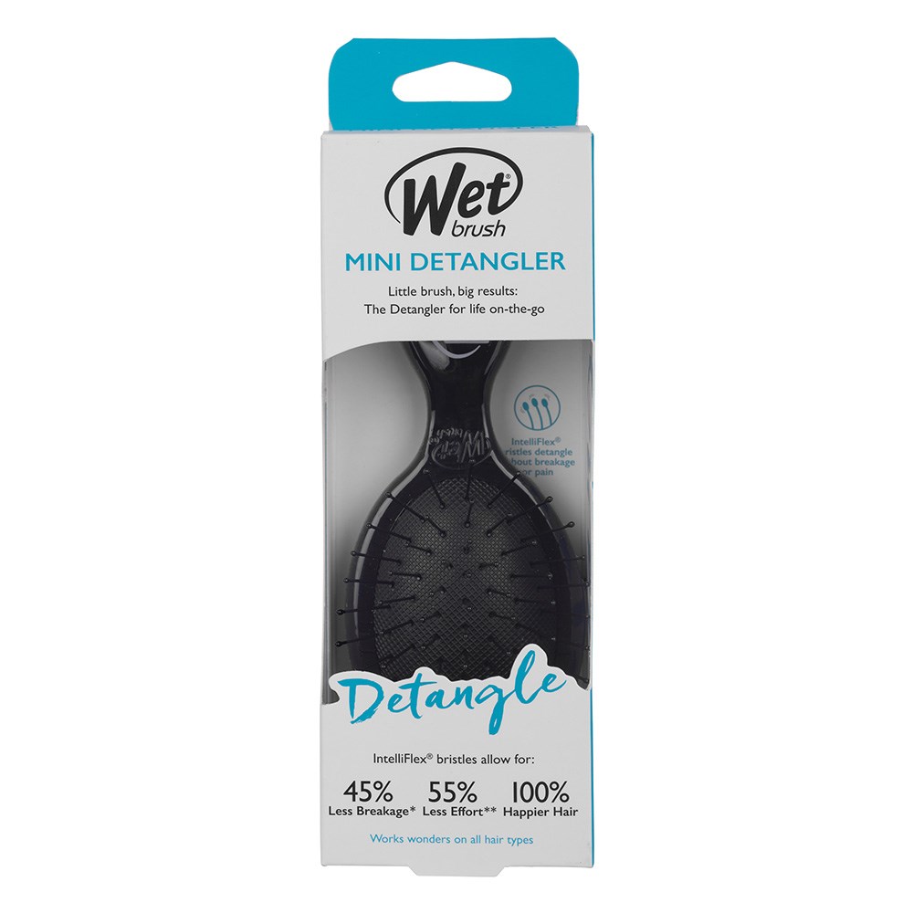 WetBrush Mini Detangler Black, the brush for life on-the-go. WetBrush have shrunk their Original Detangler into a smaller, cuter size! Exclusive, ultra-soft IntelliFlex bristles glide through tangles with ease. All WetBrush Detanglers let you brush with less force so you can detangle with less damage to hair. Minimises pain and protects against split ends and breakage. Works wonders on all hair types.
