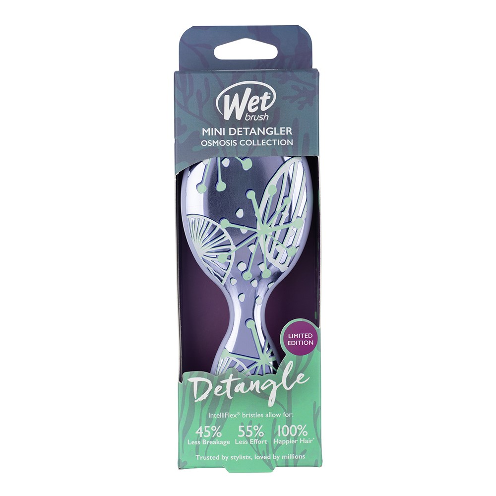 WetBrush Osmosis Mini Detangler Hair Brush Sparkling Sea Life, the detangler for life on-the-go. WetBrush have shrunk their Original Detangler into a smaller, cuter size! Exclusive, ultra-soft IntelliFlex bristles glide through tangles with ease. Minimizing pain and protecting against split ends and breakage. All WetBrush Detanglers let you brush with less force so you can detangle with less damage to hair.