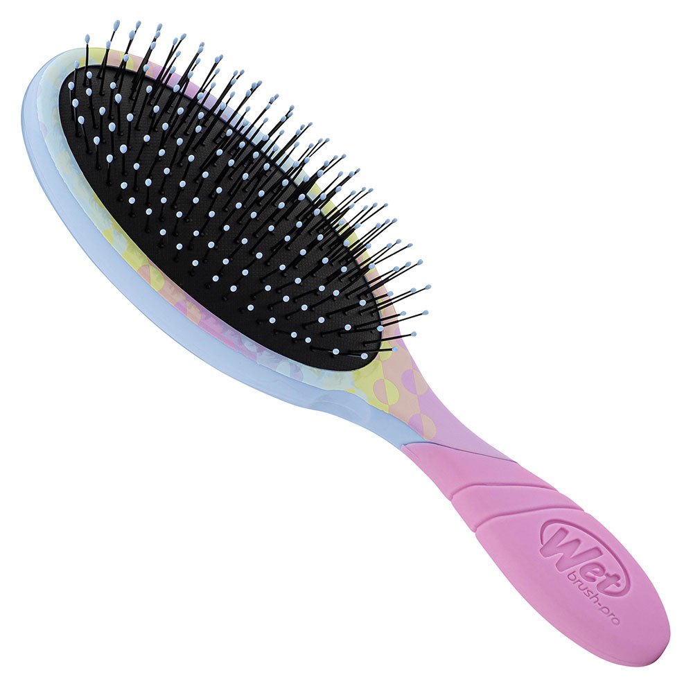 Dazzling detangling! WetBrush Pro Dazzling Dots Detangler Pink features gorgeous, limited edition dot patterns. This is the world famous, award-winning Wet Brush Original Detangler redesigned by stylists for stylists. Revolutionary IntelliFlex bristles diffuse knots on all hair types, wet or dry, gliding through tangles with less effort, less pain and over 45% less breakage**. Ergonomically advanced with finger rests and rubberised EasyGrip handle for more comfort and control.