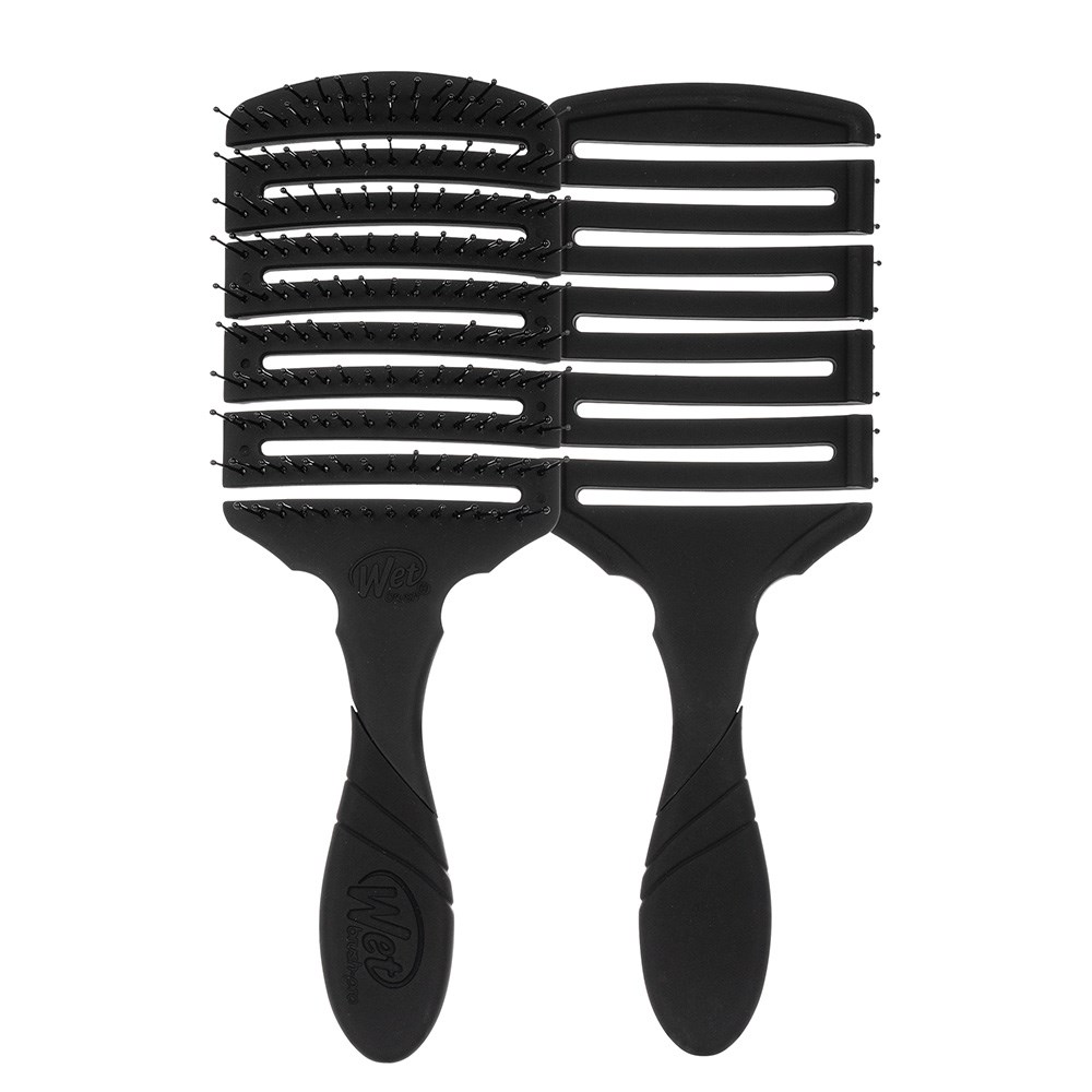 Stylists’ fave way to faster hair drying. WetBrush Pro Frost Flex Dry Paddle Detangler Black features a flexible vented paddle design to speed up dry time while contouring to the scalp for comfort. HeatFlex bristles are heat resistant and safe to use with a blow-dryer. OmniFlex brush head flexes in every direction to contour to scalp. This hair brush has a 20% larger surface area for faster styling.
