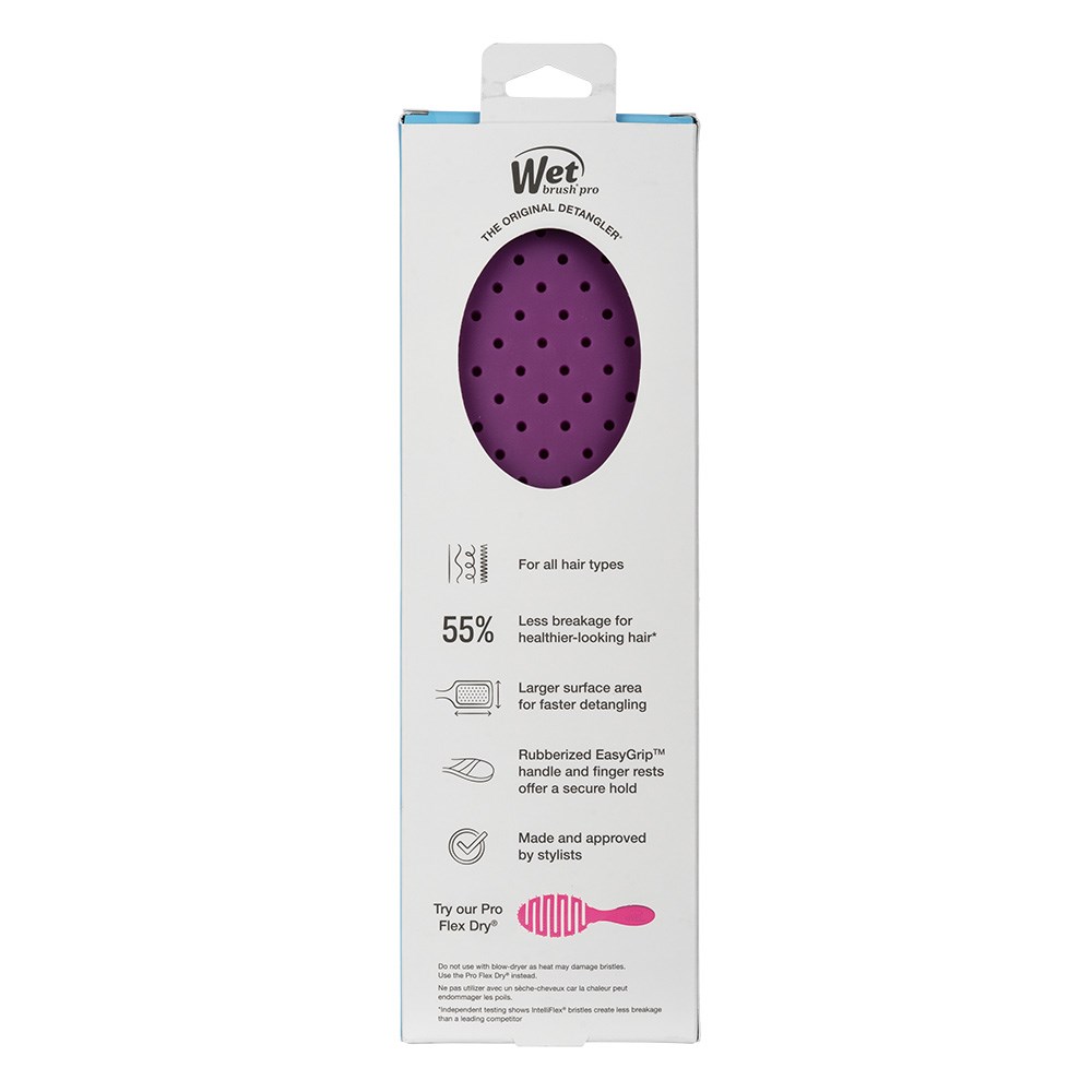 Meet the limited edition WetBrush Pro Frost Paddle Detangler in Purple. The 20% larger brush head and expanded cushion area glides through tangles faster. Exclusive, ultra-soft IntelliFlex bristles minimise effort, breakage and pain. AquaVent design allows for fast water drainage and easy clean-up, making this brush ideal for use with conditioning treatments and masks. Ergonomically advanced design features finger rests and rubberised EasyGrip handle for comfort and control, even when hands are wet.