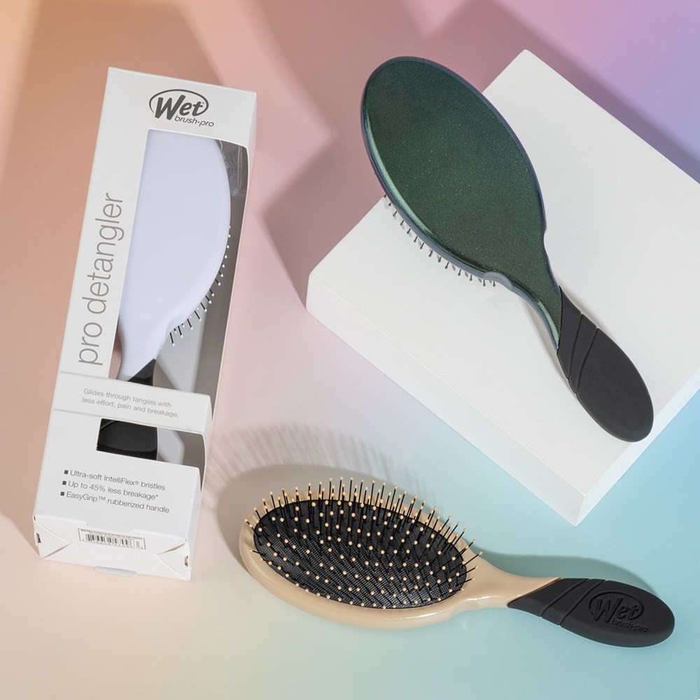 It’s time to sparkle and shine! WetBrush Pro Detangler Glitter Glam Frost features a stunning, limited edition glitter design. This is the world famous, award-winning Original Detangler redesigned by stylists for stylists. Revolutionary IntelliFlex bristles diffuse knots on all hair types, wet or dry, gliding through tangles with less effort, less pain and over 45% less breakage**. Ergonomically advanced with finger rests and rubberised EasyGrip handle for more comfort and control of your Wet Brush.