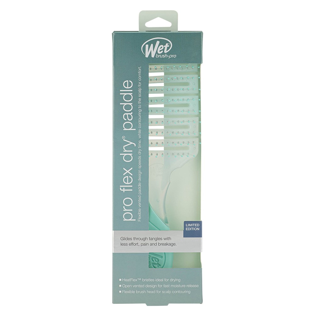 This stylist favourite is the fastest way to style wet hair. WetBrush Pro Hydro Tie Dye Flex Dry Paddle Brush Teal features an open vented design for fast moisture release. OmniFlex brush head flexes in every direction to contour to the scalp. 20% larger surface area for faster styling. HeatFlex bristles are heat-resistant and safe to use with a blow-dryer. Glide through tangles with less effort, pain and breakage! Ergonomically advanced design features finger rests and rubberised EasyGrip handle for comfort and control. This limited edition Wet Brush hair brush in subtle tie dye colour scheme is sure to be your favourite too!