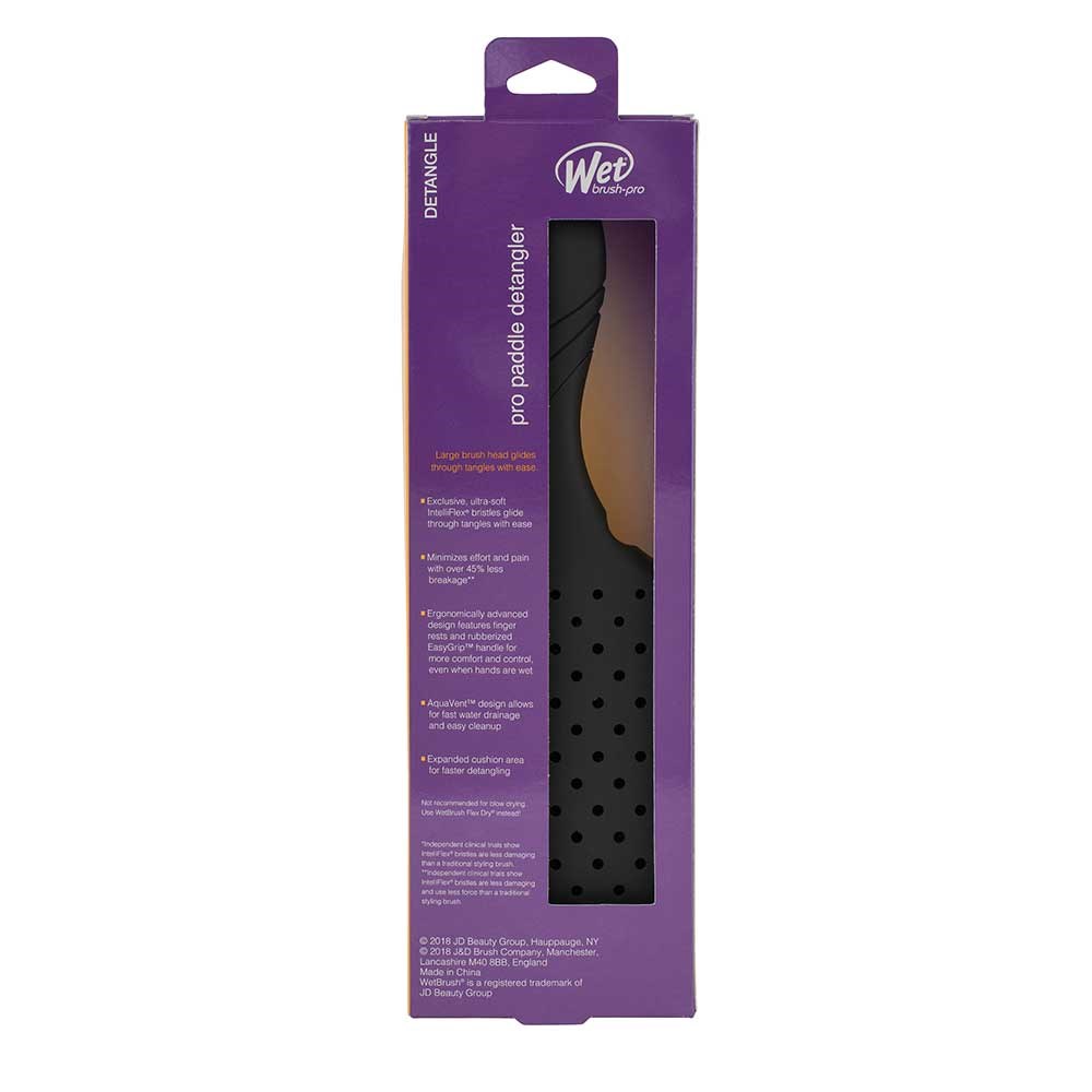 Diffuse knots with less effort, pain and breakage. WetBrush Pro Paddle Detangler Black is designed by stylists for stylists. Not only does this brush gently loosen knots without pain or pulling, it’s also great for maximising the spread and effectiveness of masks and treatments. Super easy brush clean-up with no leftover build-up, thanks to the AquaVent design. 20% larger surface area makes this one seriously efficient Hair Brush.