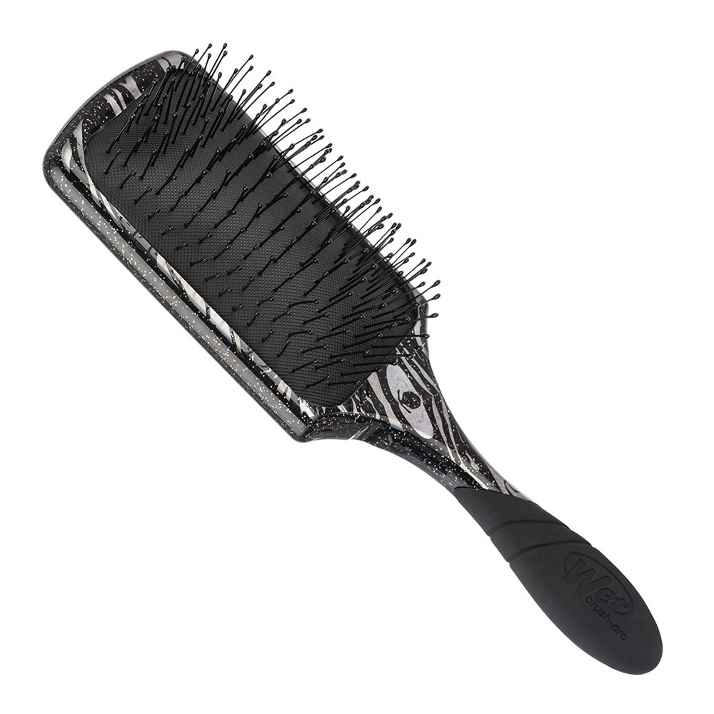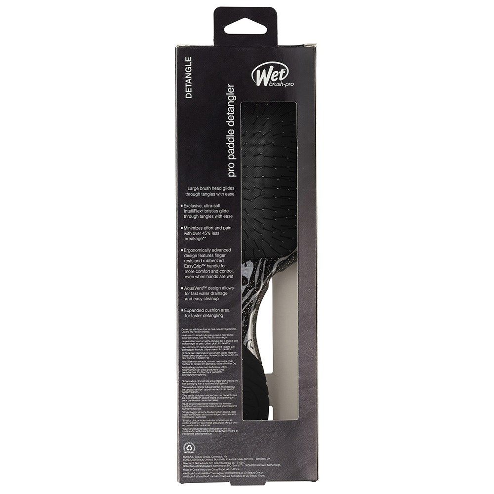 The innovative way to speed up blow-drying time. WetBrush Pro Paddle Sparkle Detangler Hair Brush Charcoal is redesigned by stylists for stylists, this brush helps hair stay strong and healthy-looking. Exclusive IntelliFlex bristles loosen knots and tangles on wet or dry hair, without pulling or snagging. Ergonomically advanced design features finger rests and rubberised EasyGrip handle for more comfort and control, even with wet hands. With vibrant, abstract pattern, this is truly an inspiring detangler.