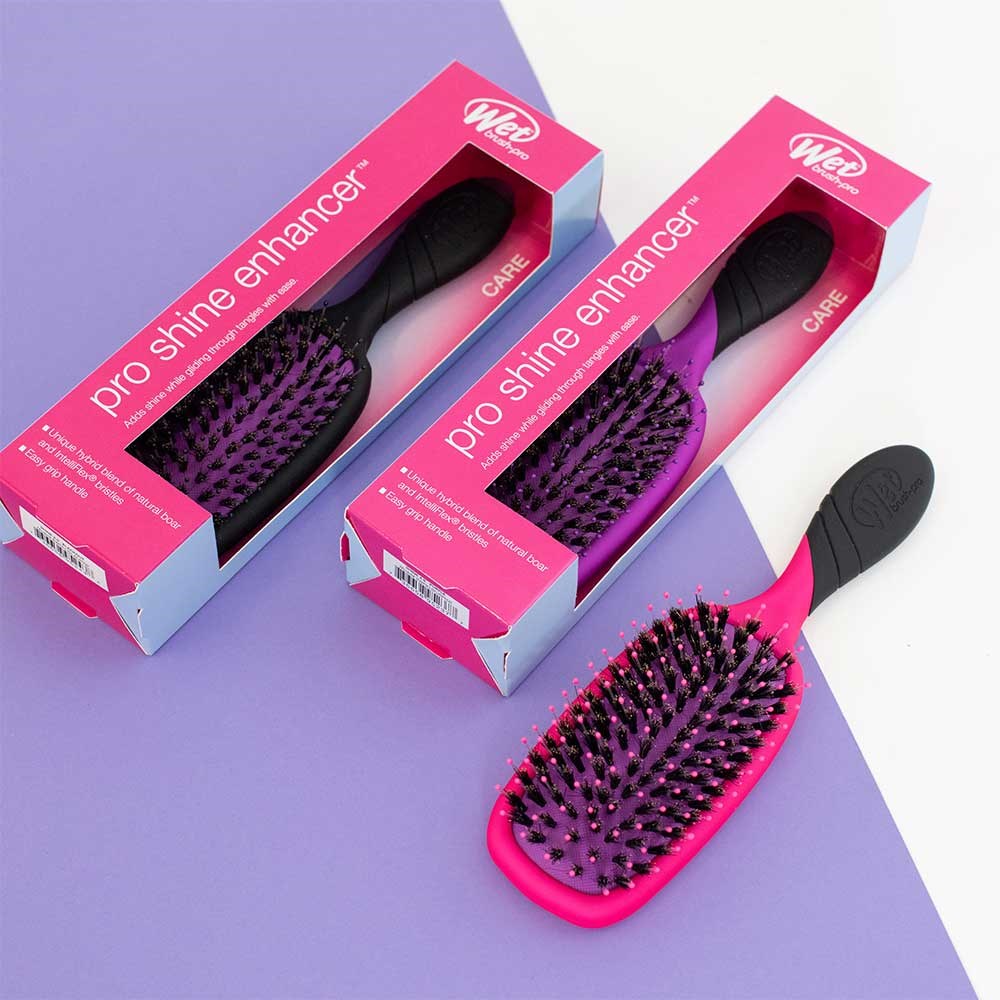 Add shine while gliding through tangles with less effort, pain and breakage. WetBrush Pro Shine Enhancer Hair Brush in Purple is designed by stylists for stylists. Boar bristles distribute hair’s own oils, leaving hair shiny and smooth. Exclusive, ultra-soft IntelliFlex bristles diffuse tangles with ease. Great for finishing, styling updos and evenly distributing dry shampoo.
