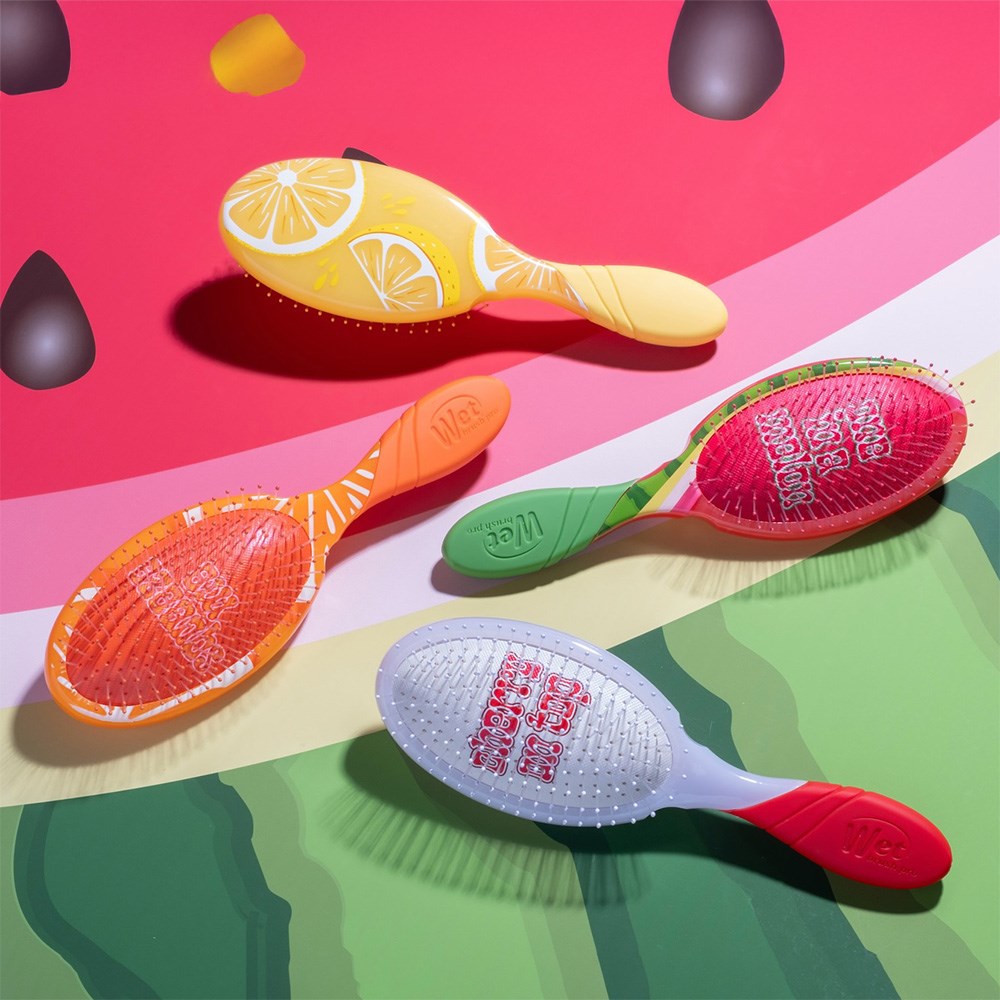 The vibrant spirit of summer! WetBrush Pro Tutti Fruitti Detangler Watermelon features a limited edition fruit design. This is the world famous, award-winning Original Detangler redesigned by stylists for stylists. Revolutionary IntelliFlex bristles diffuse knots on all hair types, wet or dry, gliding through tangles with less effort, less pain and over 55%* less breakage. Ergonomically advanced with finger rests and rubberised EasyGrip handle for more comfort and control.