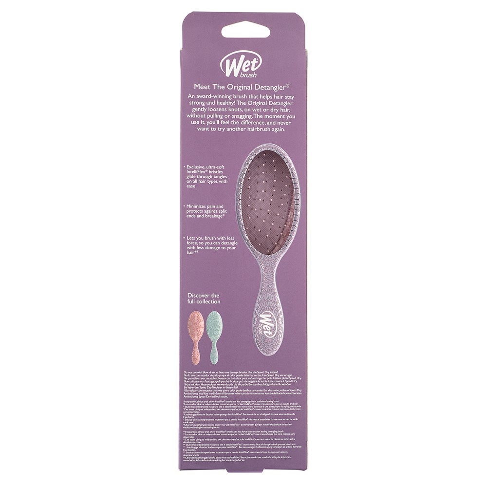 The original, award-winning brush which helps hair stay strong! WetBrush Reclaimed Romance Detangler Purple gently loosens knots on wet or dry hair without pulling or snagging. The moment you use it, you’ll feel the difference and never want to try another detangling brush again. Exclusive, ultra-soft IntelliFlex bristles glide through tangles on all hair types with ease. Minimise pain and protect against split ends and breakage. Brush with less force so you can detangle with less damage to hair. Fall in love with detangling with Wet Brush!