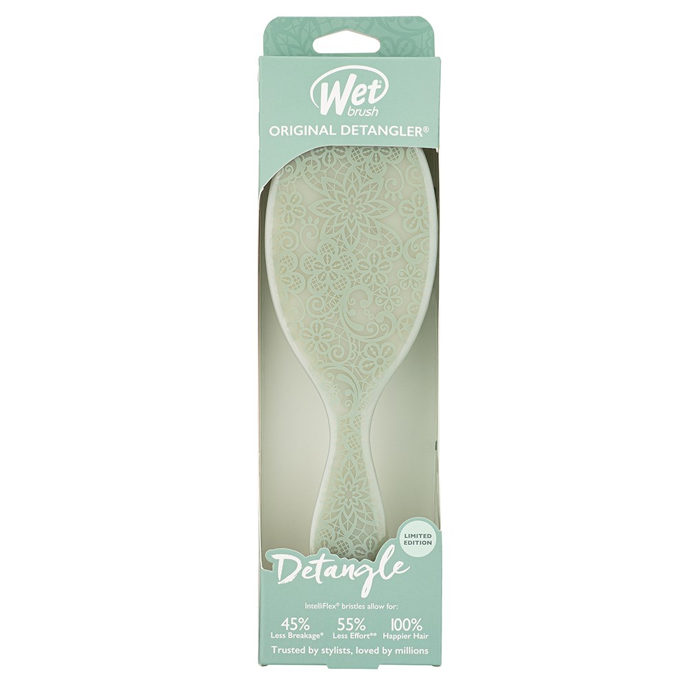 The original, award-winning brush which helps hair stay strong! WetBrush Reclaimed Romance Detangler Sage gently loosens knots on wet or dry hair without pulling or snagging. The moment you use it, you’ll feel the difference and never want to try another detangling brush again. Exclusive, ultra-soft IntelliFlex bristles glide through tangles on all hair types with ease. Minimise pain and protect against split ends and breakage. Brush with less force so you can detangle with less damage to hair. Fall in love with detangling with Wet Brush!