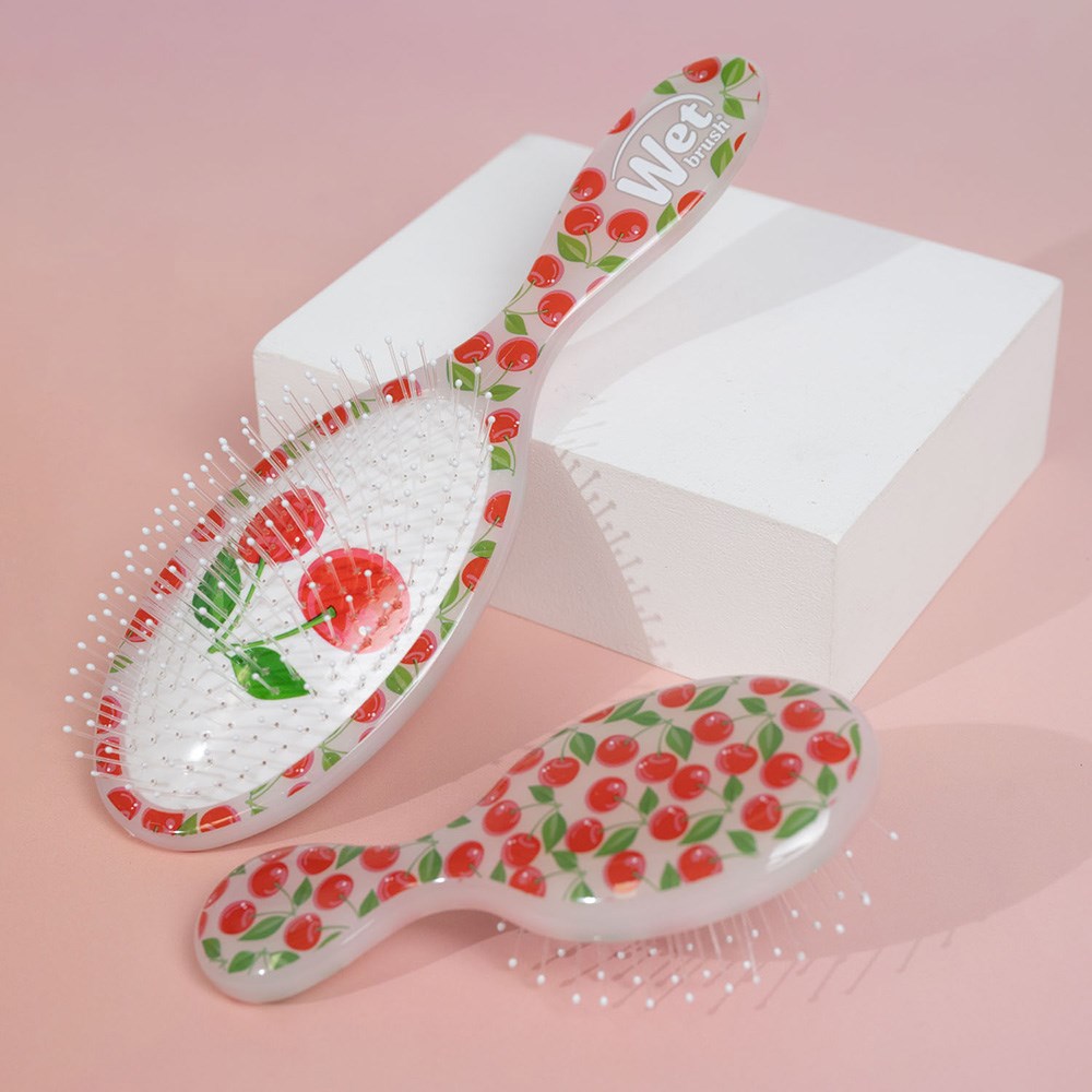 The original, award-winning brush which helps hair stay strong! WetBrush Tutti Fruitti Detangler Cherry gently loosens knots on wet or dry hair without pulling or snagging. The moment you use it, you’ll feel the difference and never want to try another detangling brush again. Exclusive, ultra-soft IntelliFlex bristles glide through tangles on all hair types with ease. Minimise pain and protect against split ends and breakage. Brush with less force so you can detangle with less damage to hair. We’re sweet on this limited edition WetBrush Detangler in Cherry!