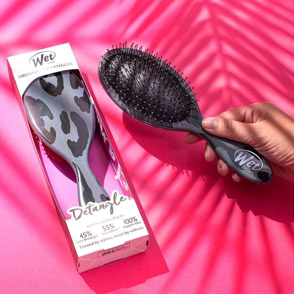 Meet the solution to roaring tangles! The WetBrush Safari Original Detangler Brush Leopard is an award-winning brush which helps hair stay strong and healthy-looking. Exclusive IntelliFlex bristles loosen knots and tangles on wet or dry hair, without pulling or snagging. The moment you use WetBrush Safari Original Detangler Brush Leopard, you’ll feel the difference and never want to try another detangling hair brush again.